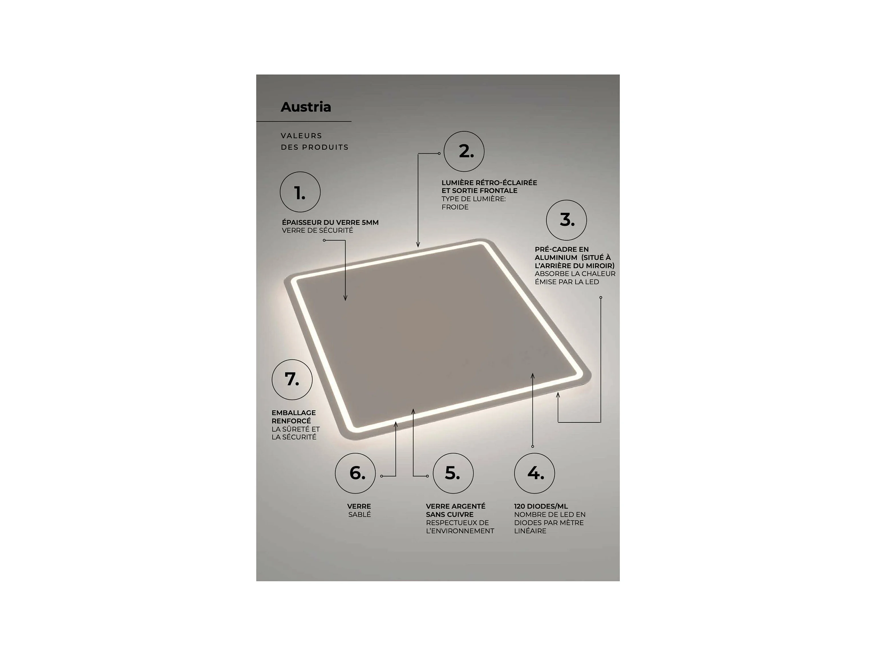 Miroir Salle de Bain AUSTRIA - 100x80cm - Led Rétro-éclairé & Diffusion Frontal (6500K) - LEDIMEX