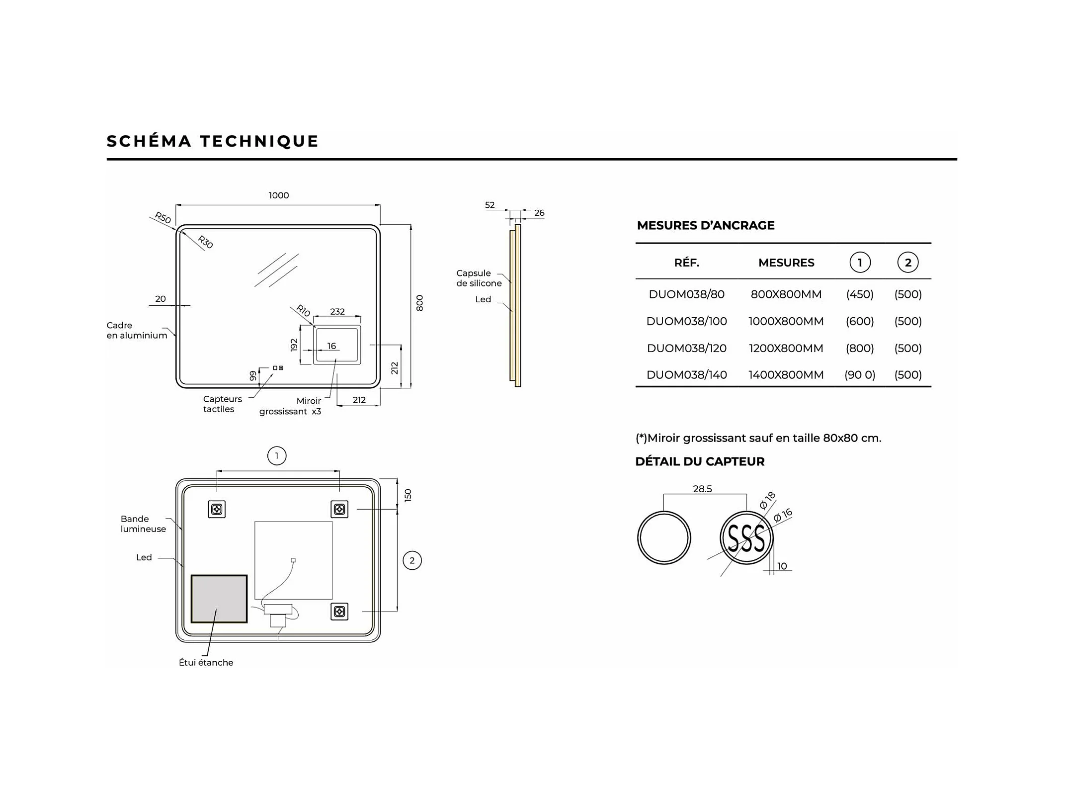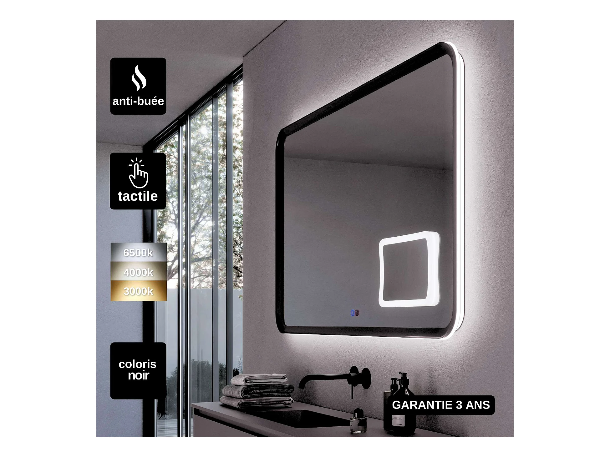 Miroir Led DUOMO Noir 120X80cm - T° Led Variable Rétro-éclairé & Frontal - Tactiles On/Off & Anti-Buée - Zone X3 - LEDIMEX