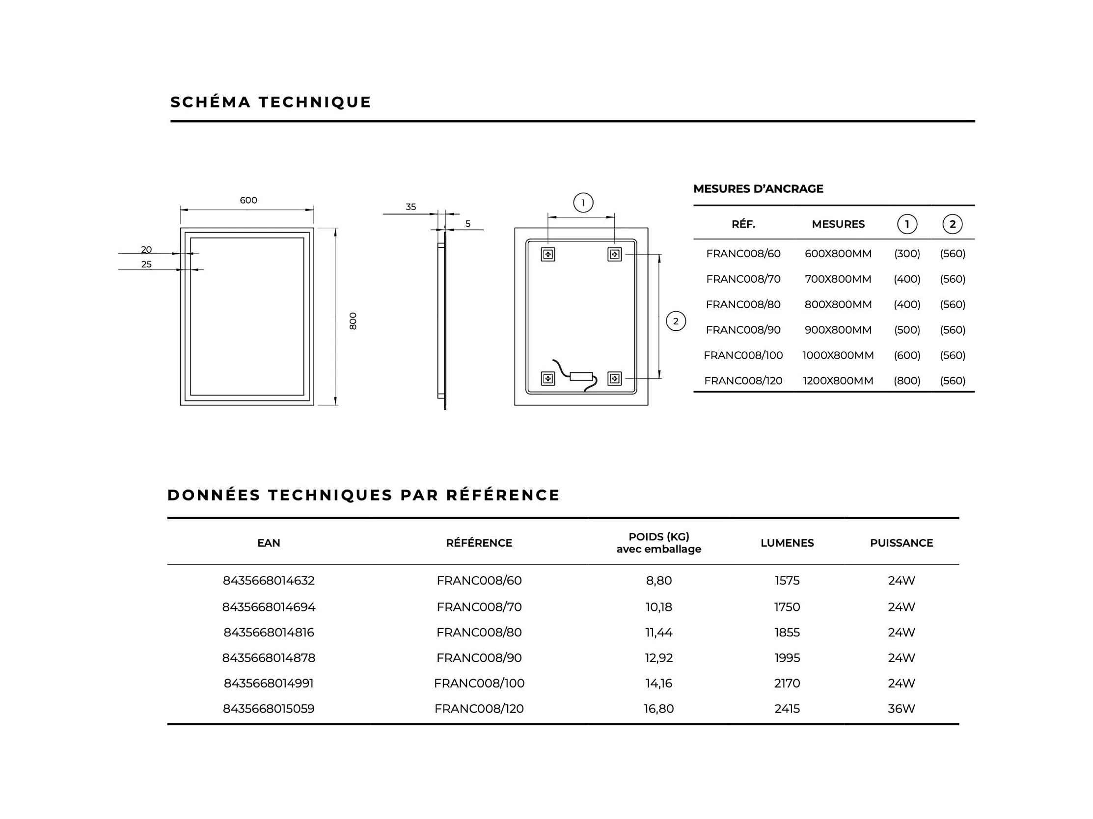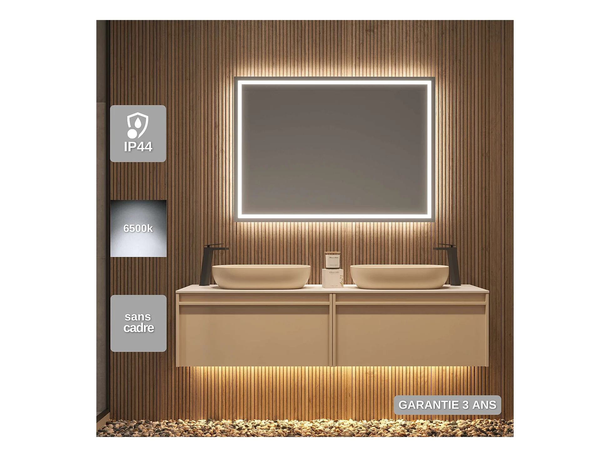 Miroir Salle de Bain FRANCIA - 80x80cm - Led Rétro-éclairé & Diffusion Frontal (6500K) - LEDIMEX