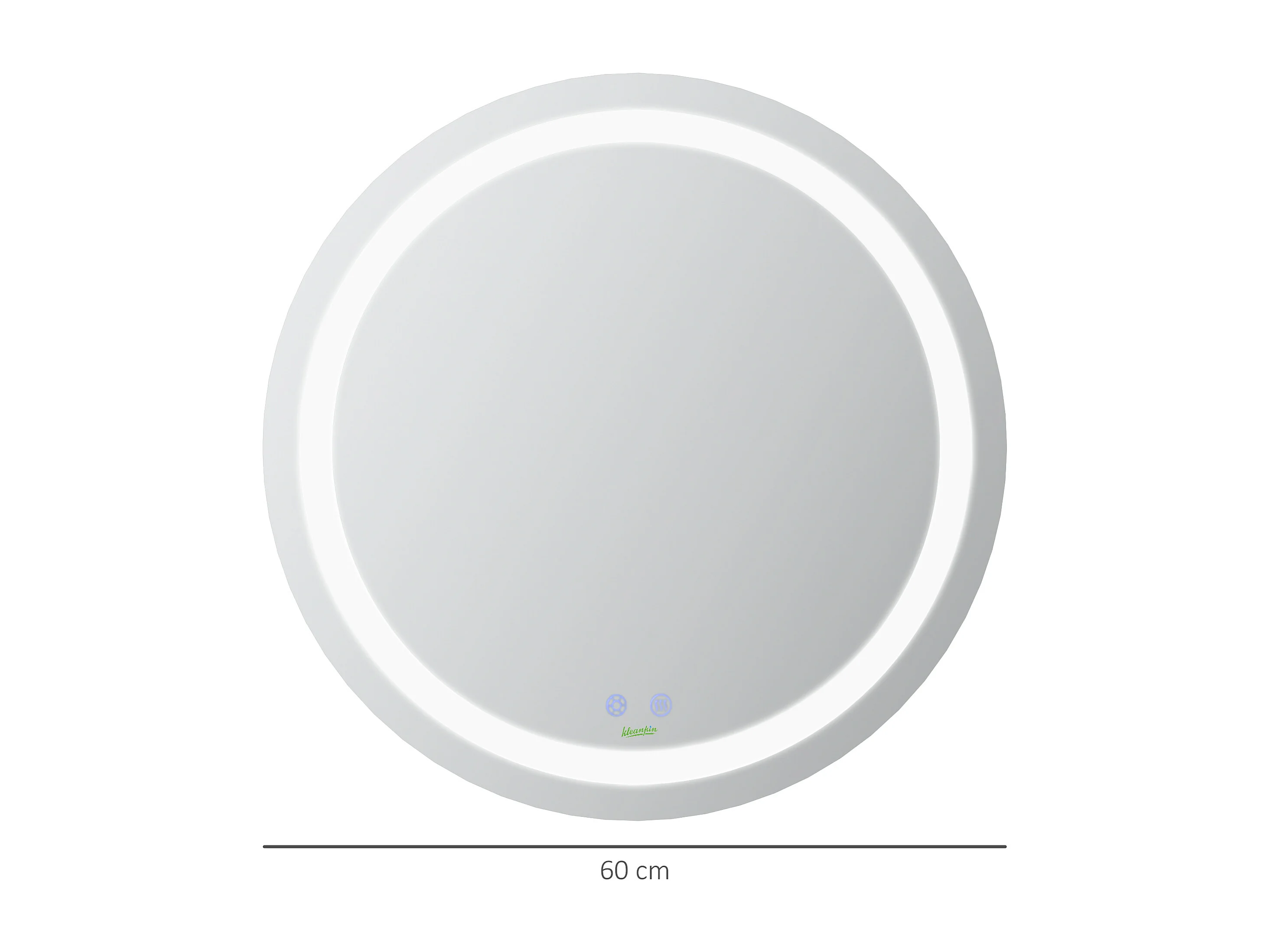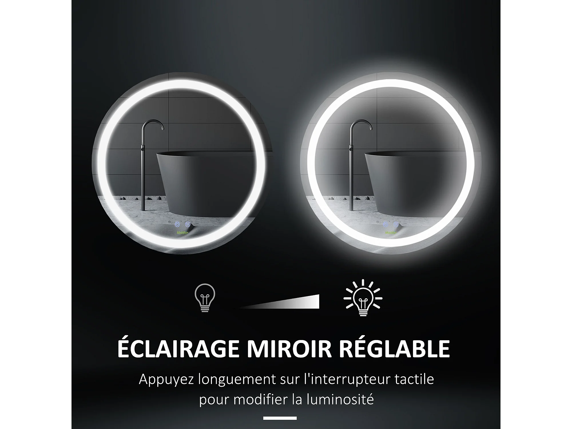 Miroir salle de bain lumineux LED 35 W - dim. Ø 60 x 4H cm - fonction anti-buée, interrupteur tactile, luminosité réglable - alu. verre
