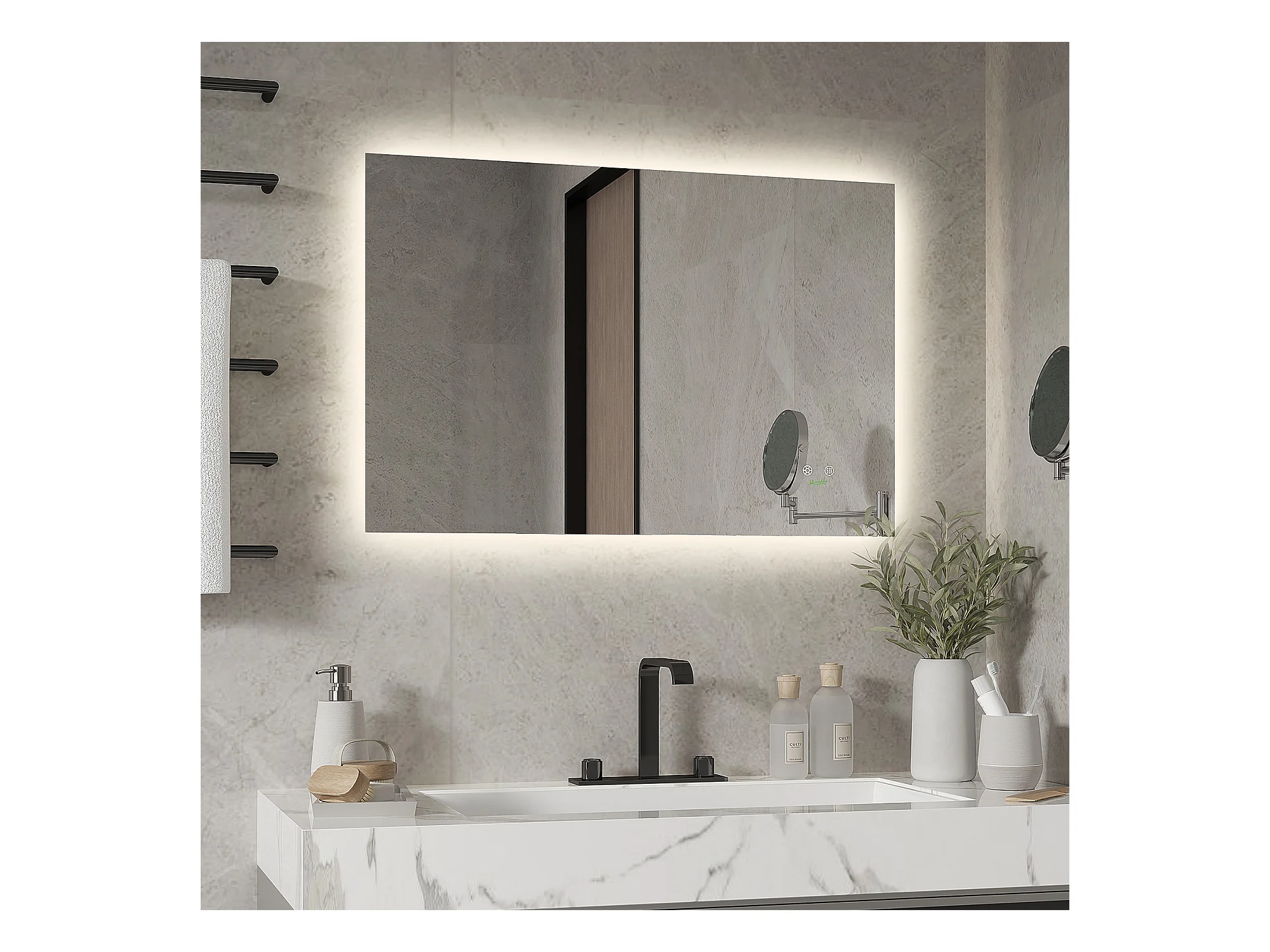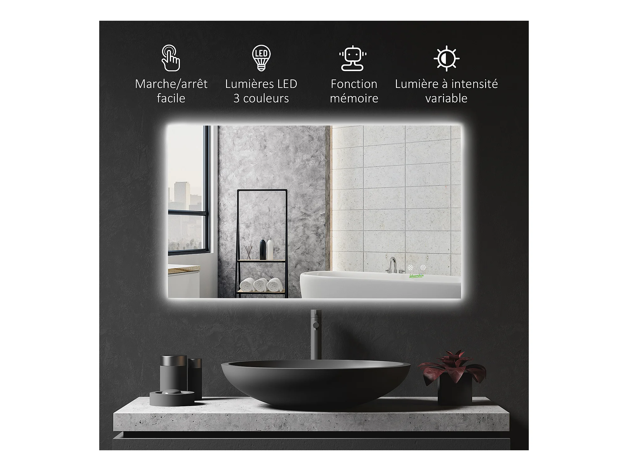 Miroir salle de bain lumineux LED 42 W - dim. 90L x 3l x 60H cm - fonction anti-buée, interrupteur tactile, luminosité réglable - alu. verre