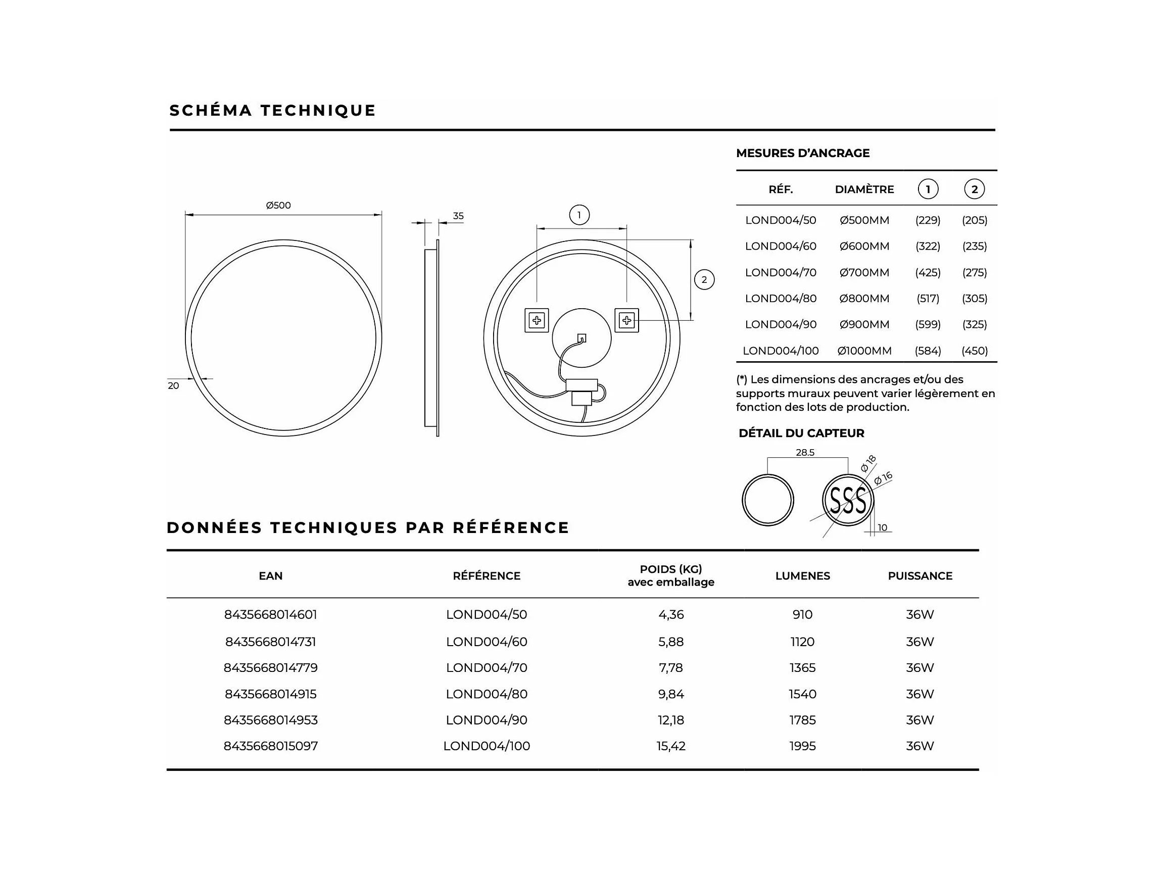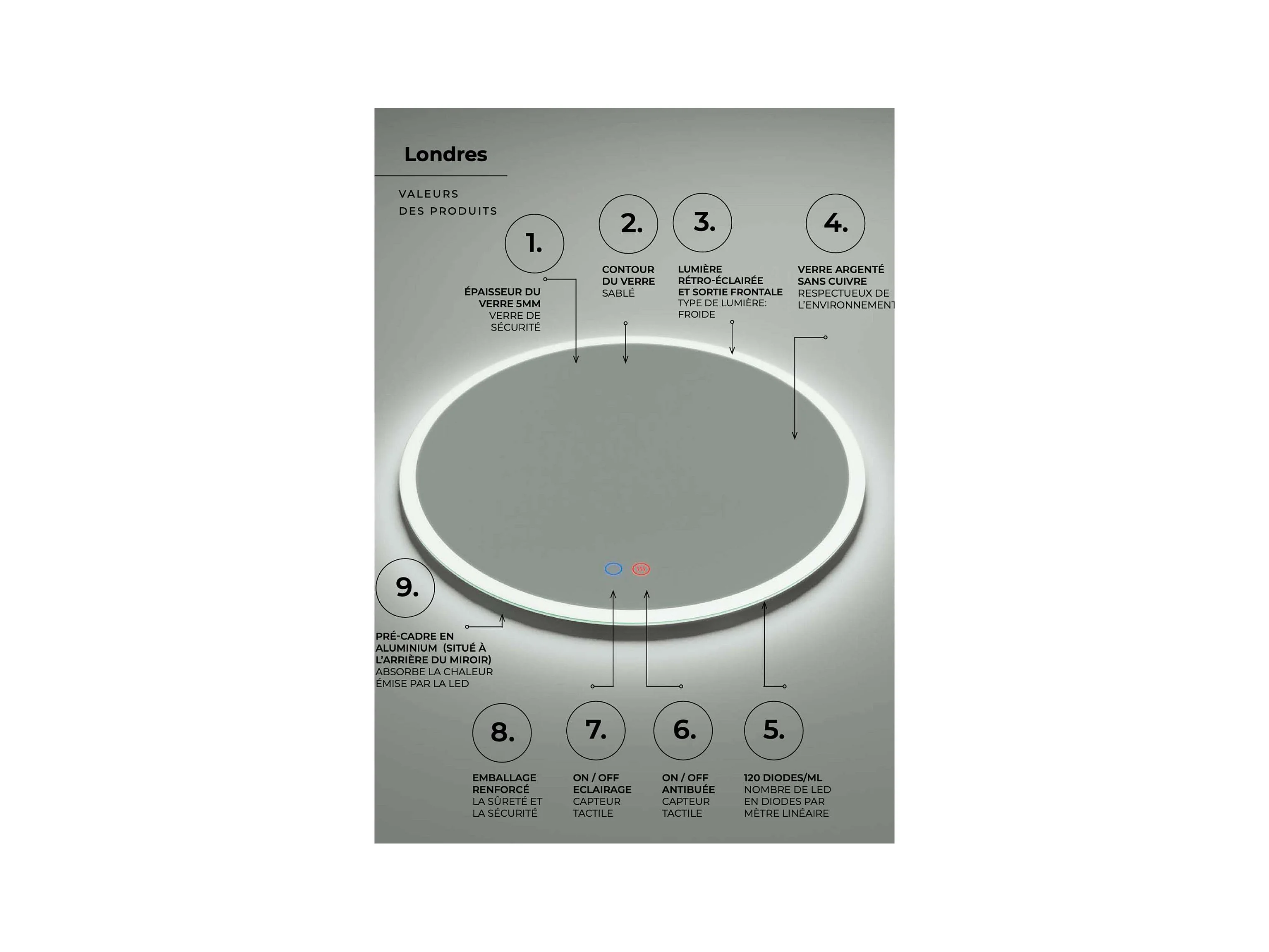 Miroir Salle de Bain LONDRES - Ø60 - Led Rétro-Éclairé (6500K) - Tactiles On/Off & Anti-Buée - LEDIMEX