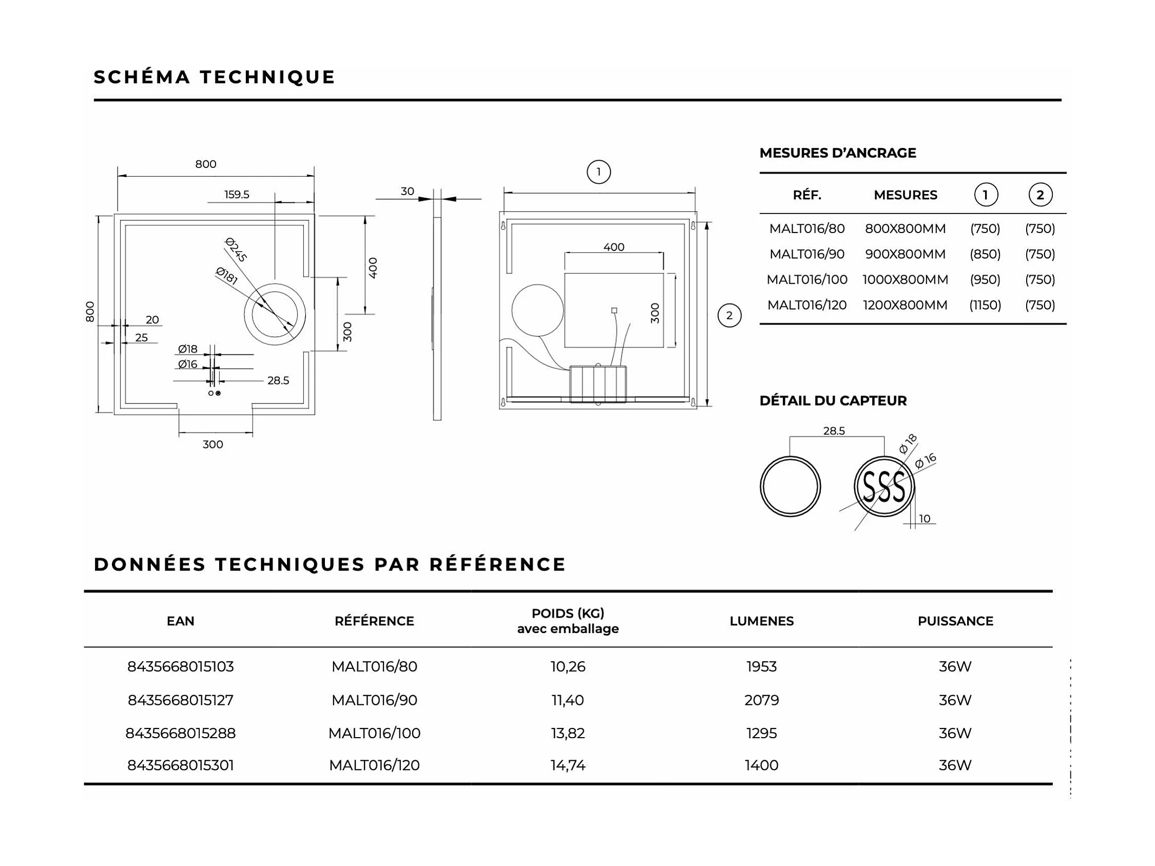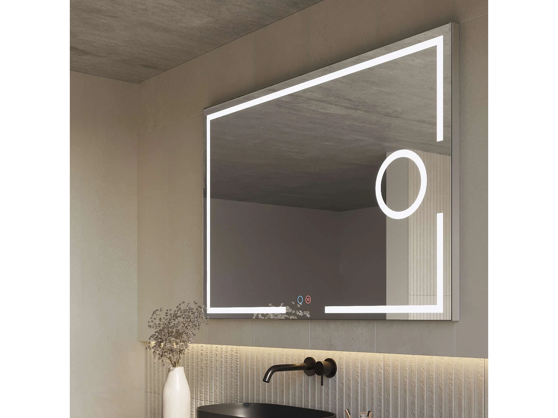 Miroir Salle de Bain MALTA - 100x80cm - T° Led Variable - Tactiles On/Off & Anti-Buée & Zone Grossissant X5 - LEDIMEX