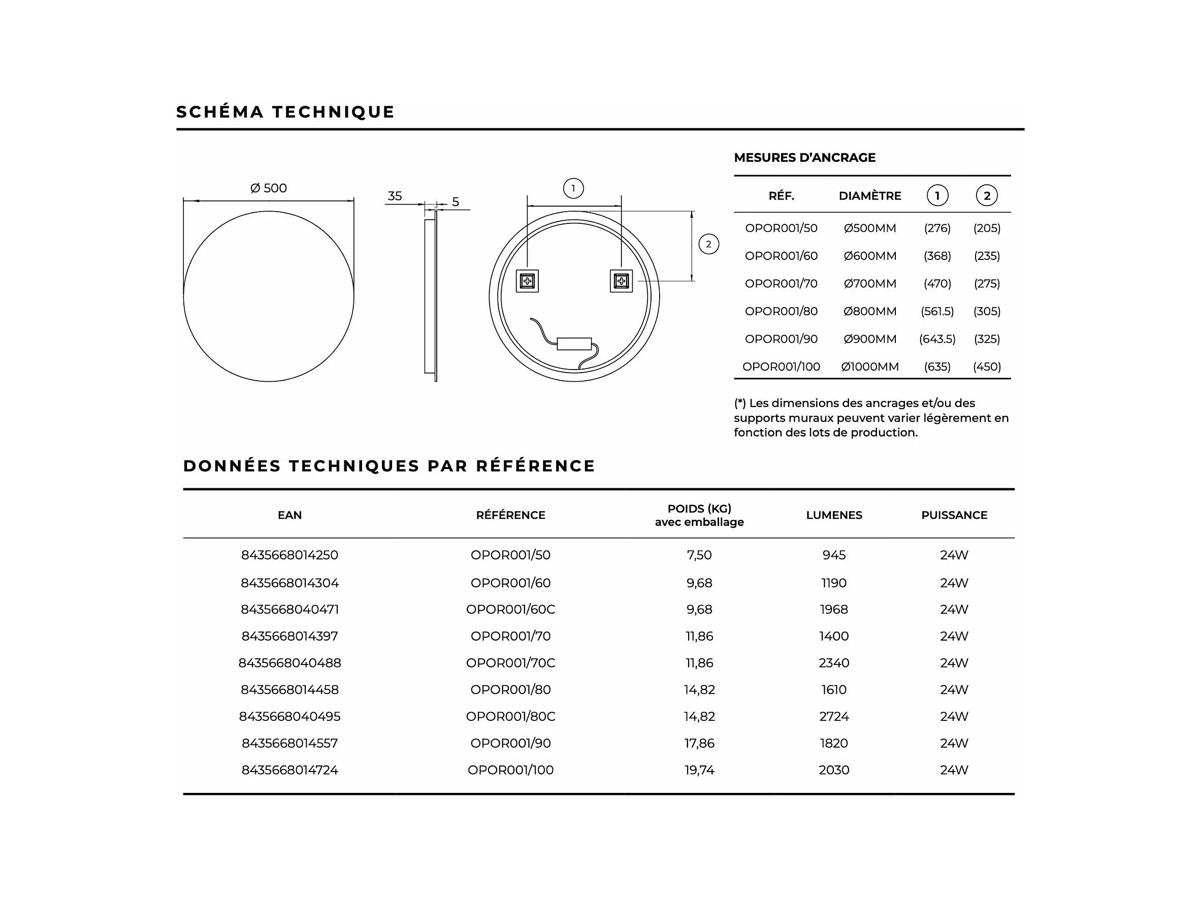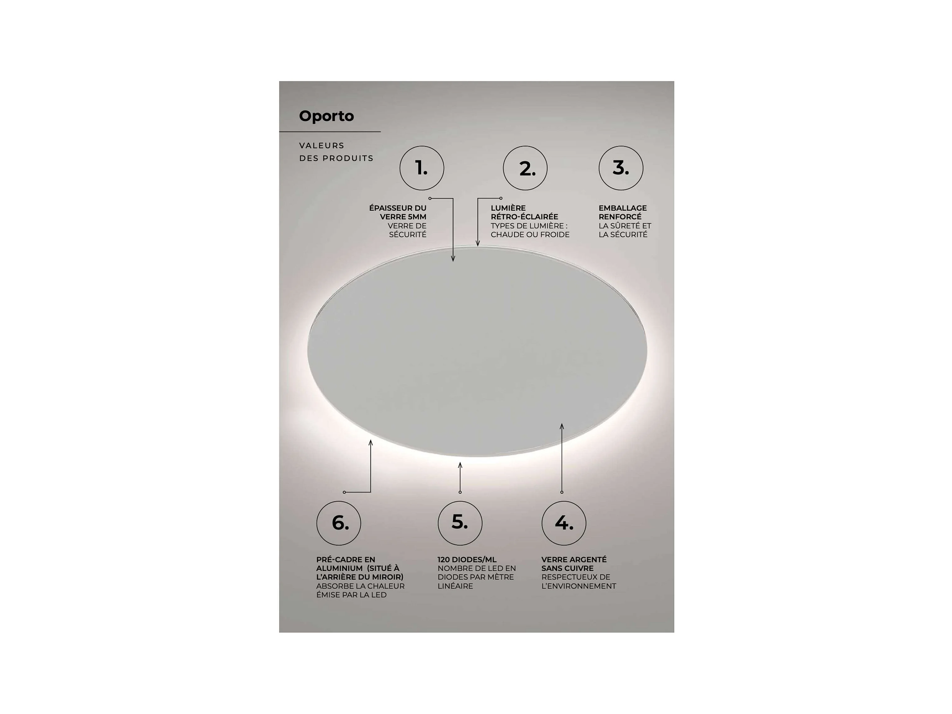 Miroir Salle de Bain OPORTO - Ø90 - Led Rétro-Éclairé (6500K) - Verre Sécurité 5mm - LEDIMEX