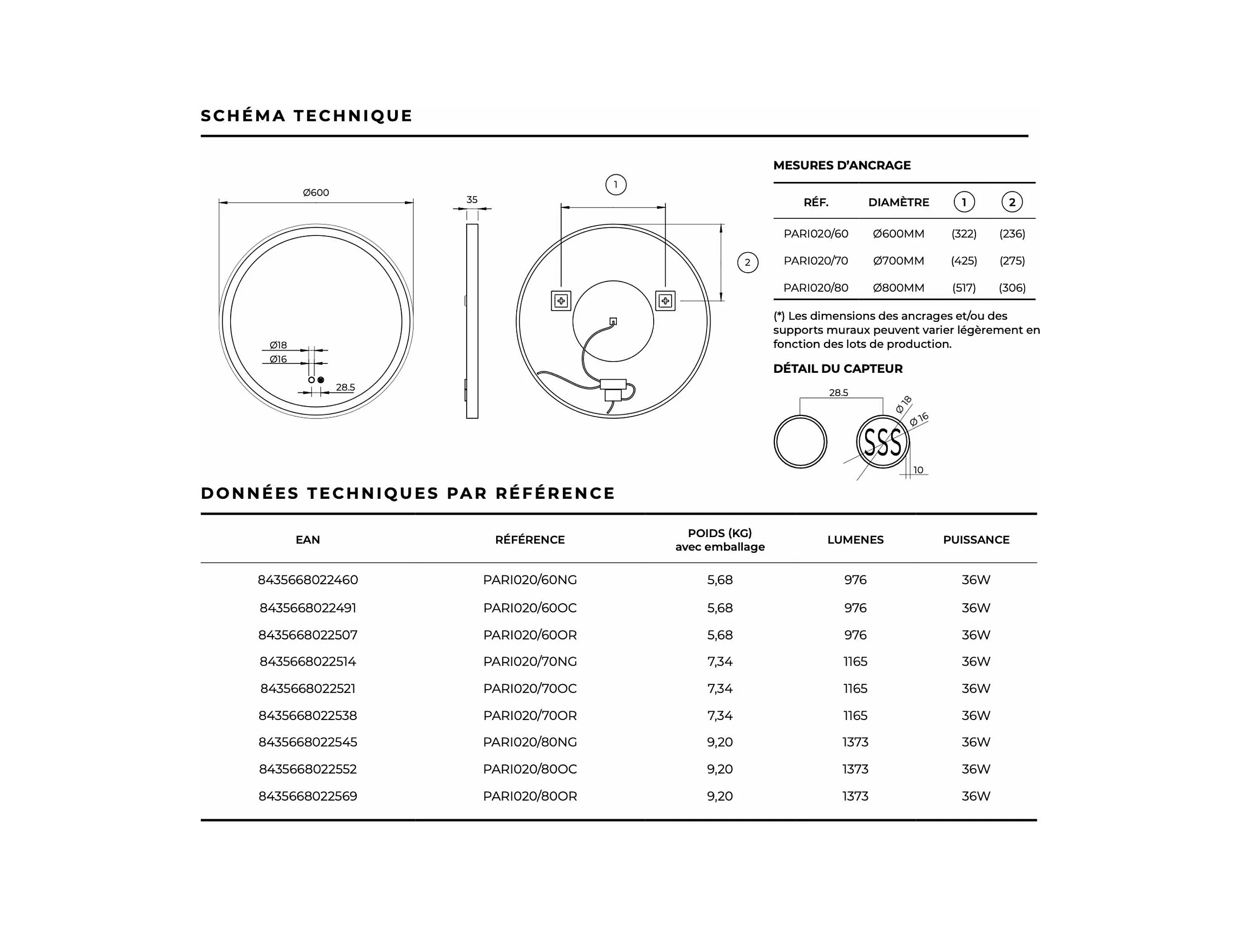 Miroir Salle de Bain PARIS - Ø70cm - Or Brossé - Led Frontal T° Variable - Tactiles On/Off & Anti-Buée - LEDIMEX