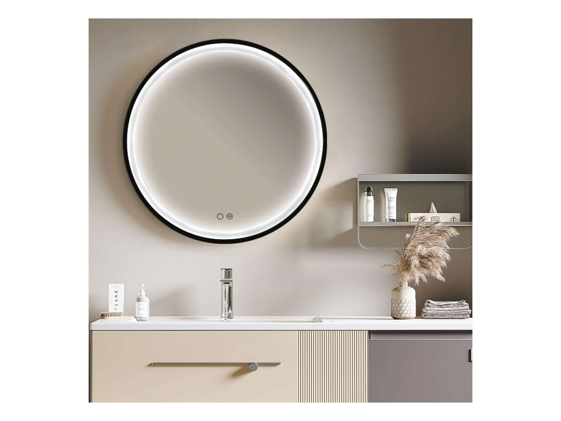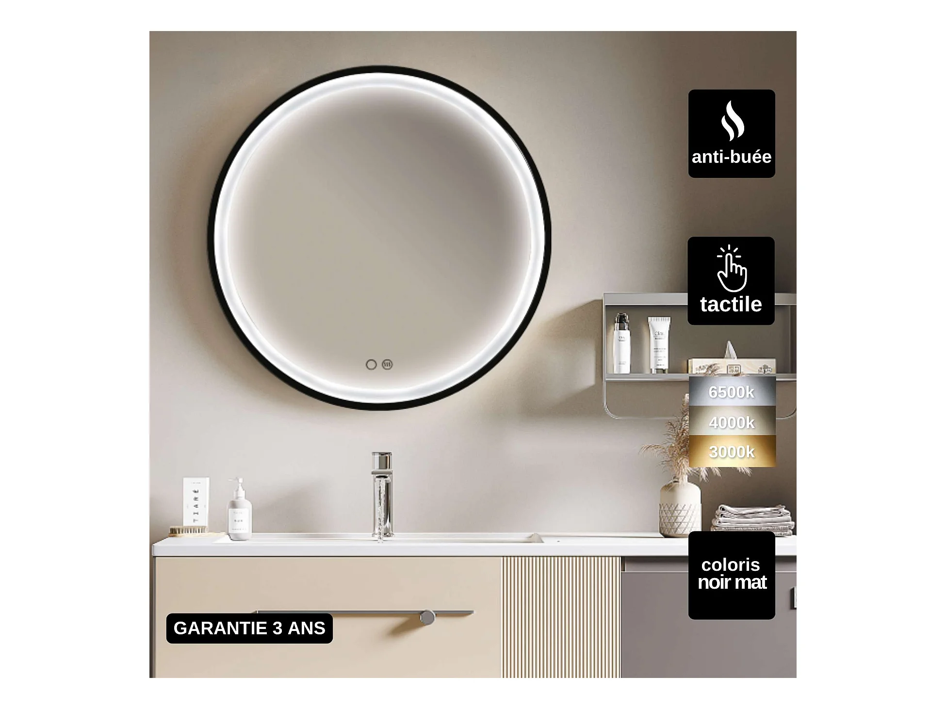 Miroir Salle de Bain PARIS - Ø80cm - Noir Mat - Led Frontal T° Variable - Tactiles On/Off & Anti-Buée - LEDIMEX