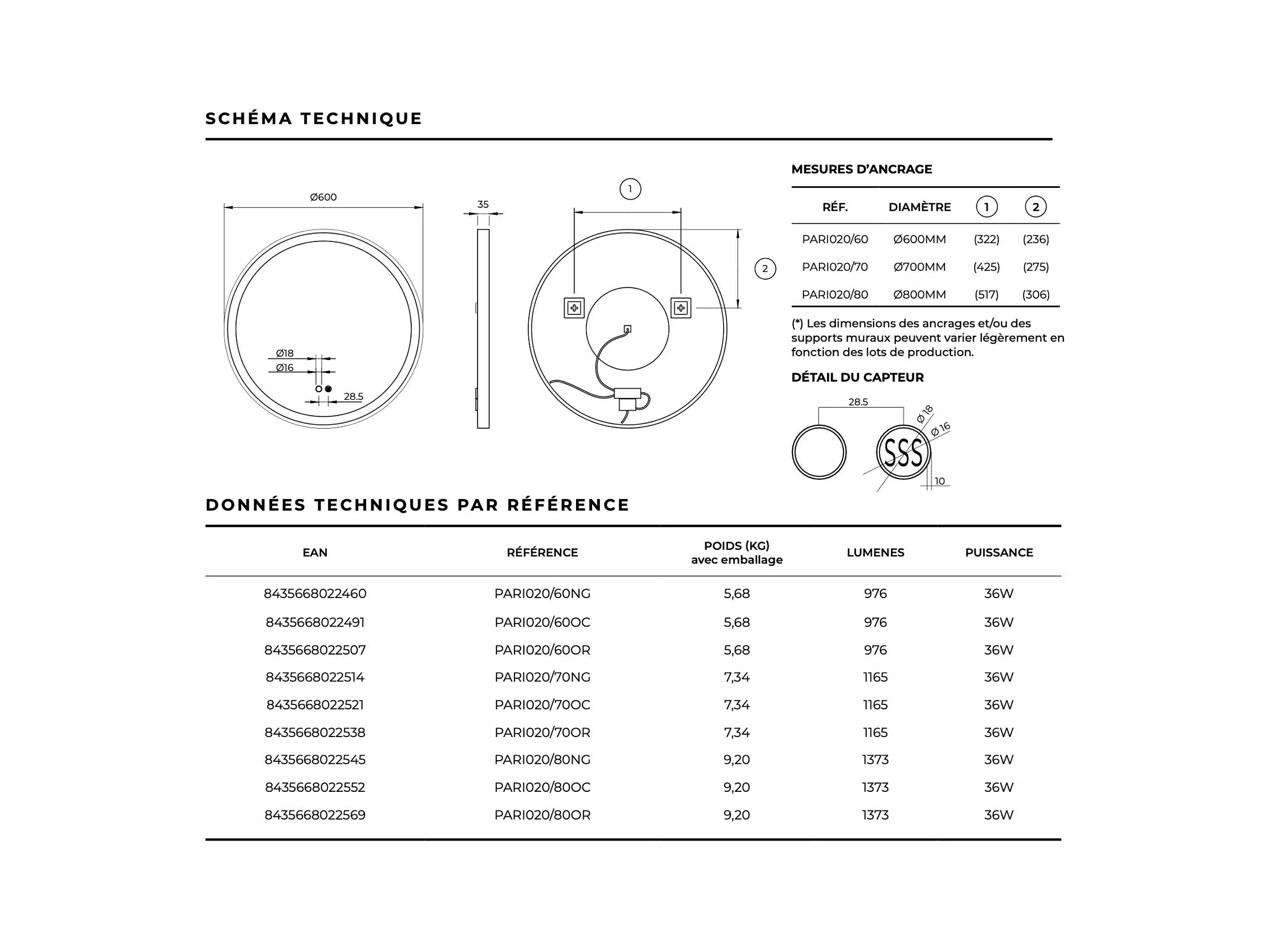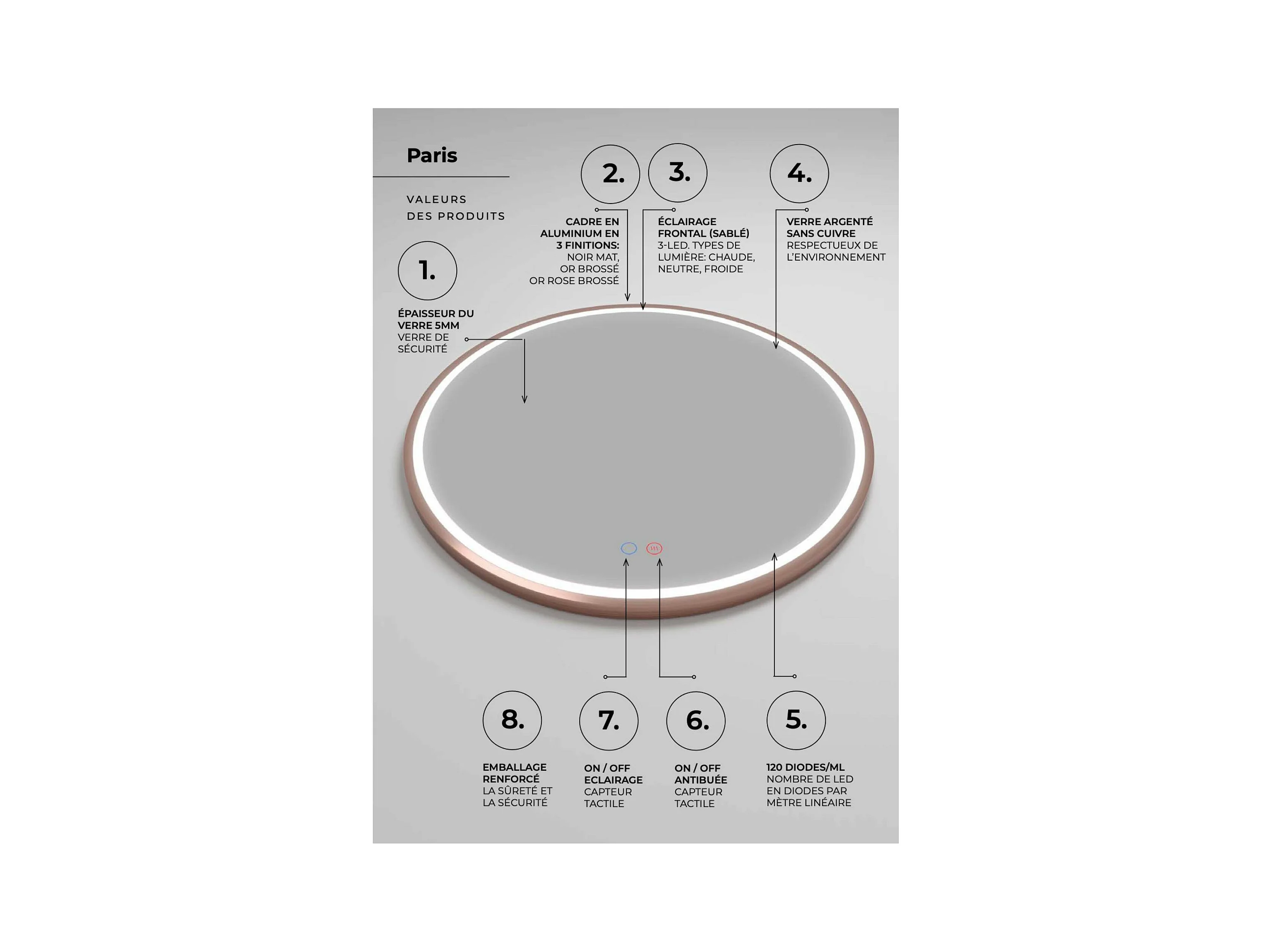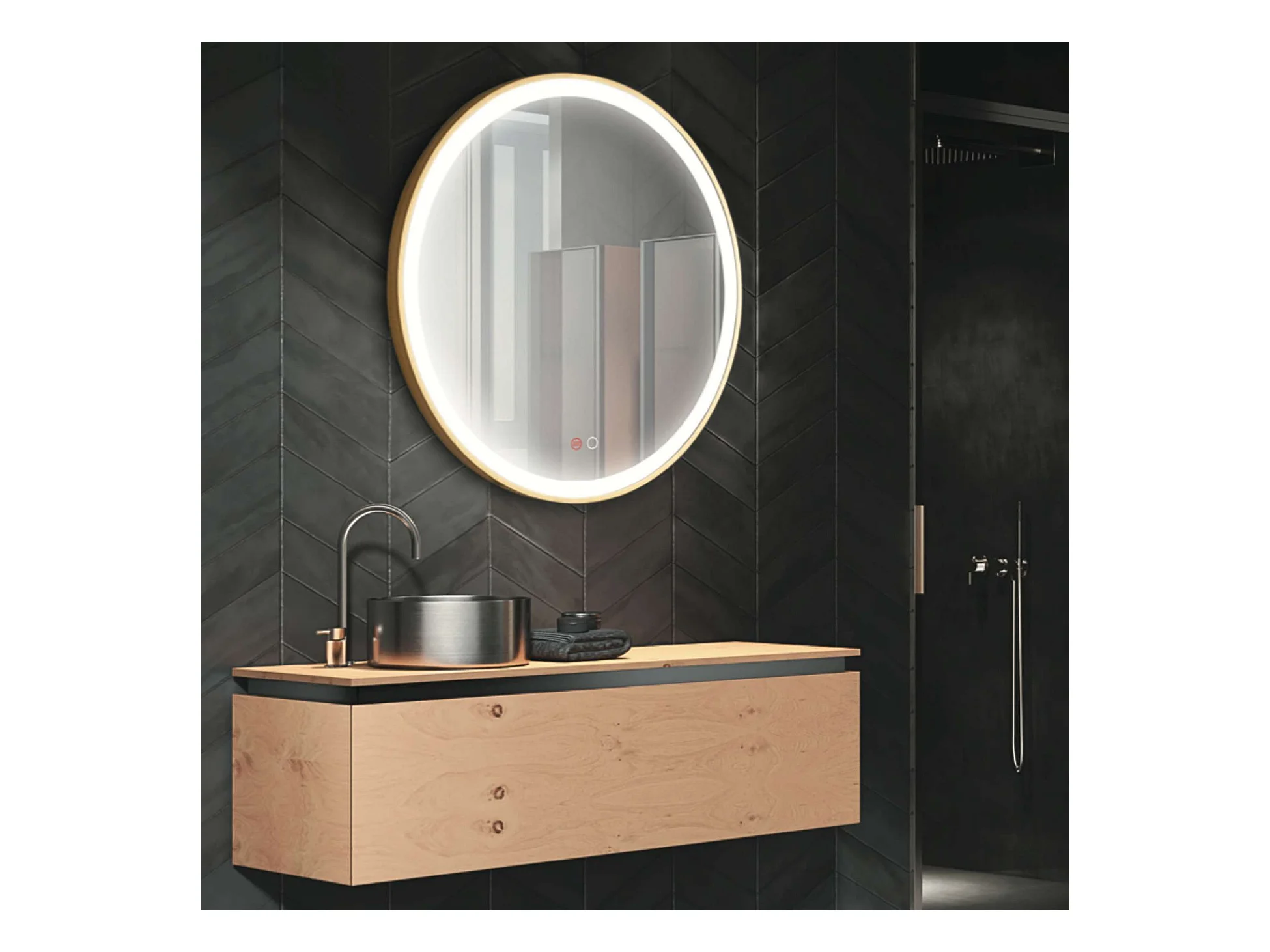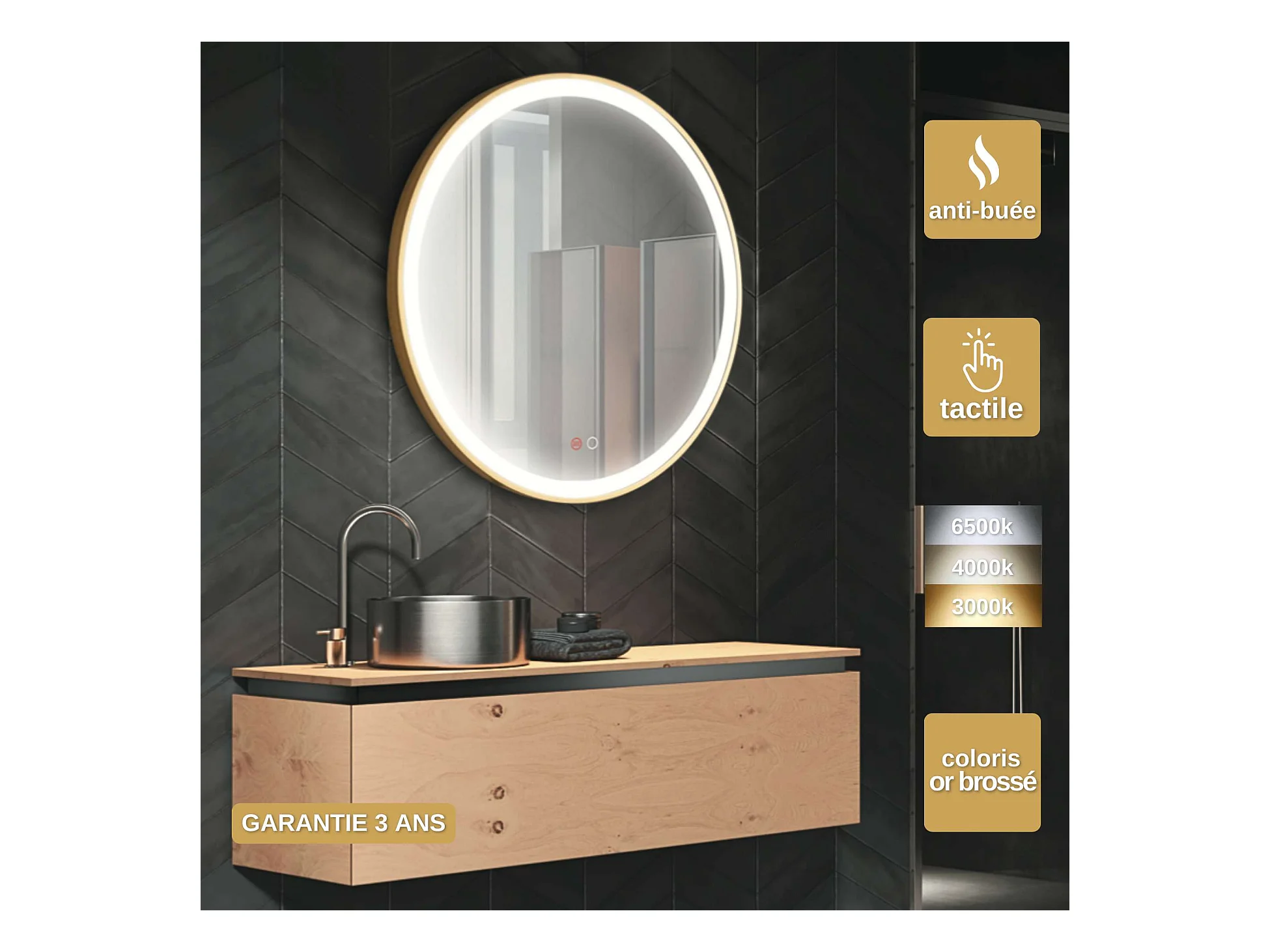 Miroir Salle de Bain PARIS - Ø80cm - Or Brossé - Led Frontal T° Variable - Tactiles On/Off & Anti-Buée - LEDIMEX