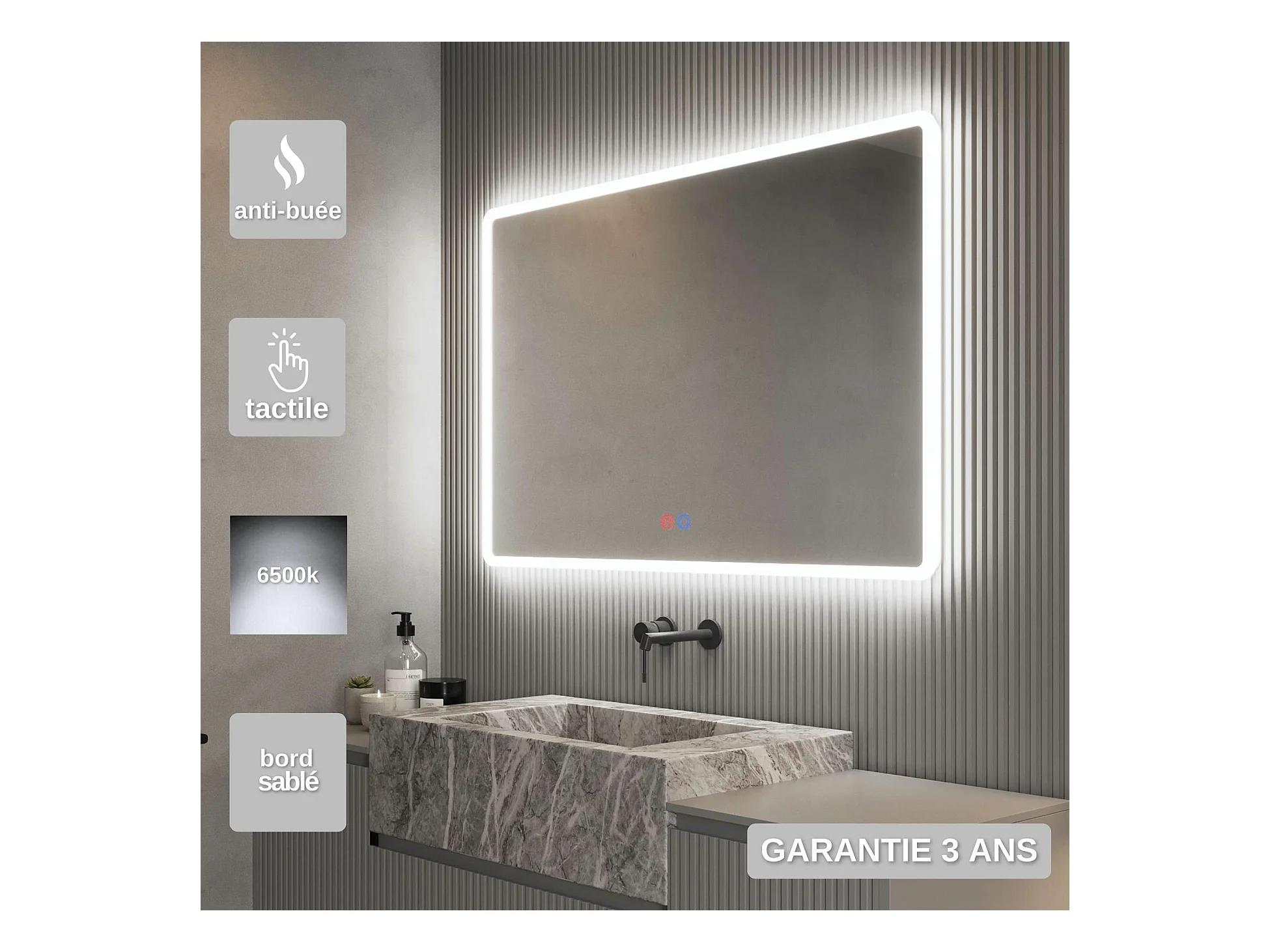 Miroir Salle de Bain PRAGA - 60x80cm - Led Rétro-éclairé & Diffusion Frontal - Tactiles On/Off & Anti-Buée - LEDIMEX