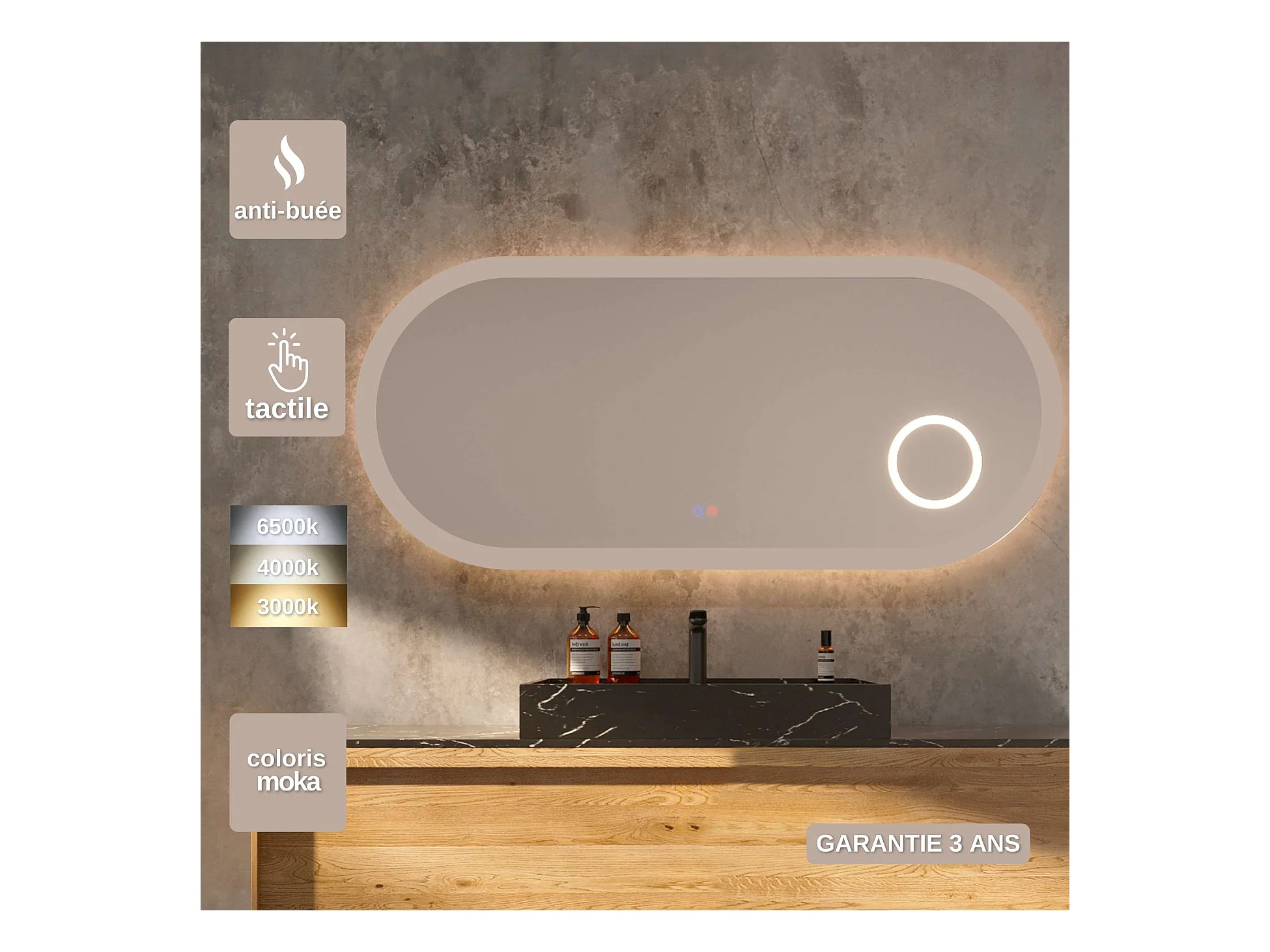 Miroir Led RIMINI Moka 100X55cm - T° Led Variable Rétro-éclairé & Frontal - Tactiles On/Off & Anti-Buée - Zone X3 - LEDIMEX