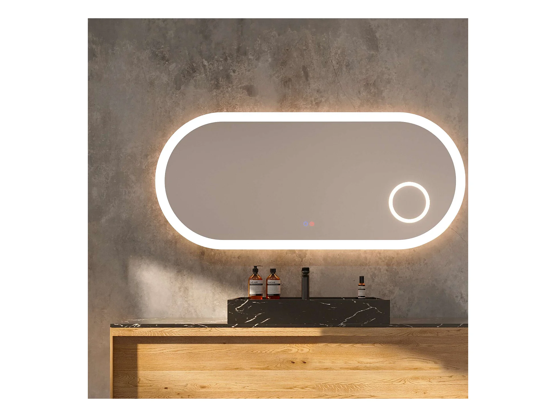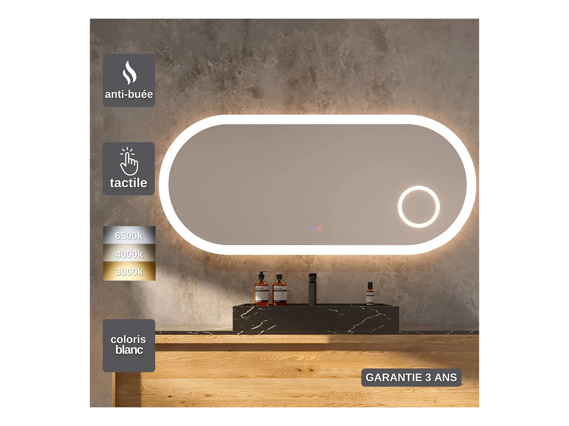 Miroir Led RIMINI Blanc120X55cm - T° Led Variable Rétro-éclairé & Frontal - Tactiles On/Off & Anti-Buée - Zone X3 - LEDIMEX