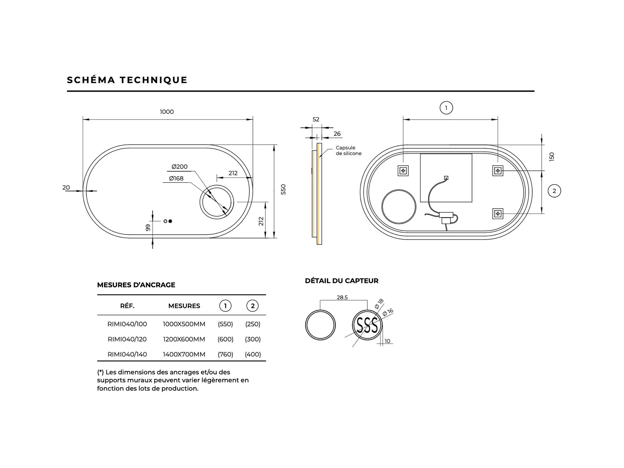 Miroir Led RIMINI Bleu 120X55cm - T° Led Variable Rétro-éclairé & Frontal - Tactiles On/Off & Anti-Buée - Zone X3 - LEDIMEX