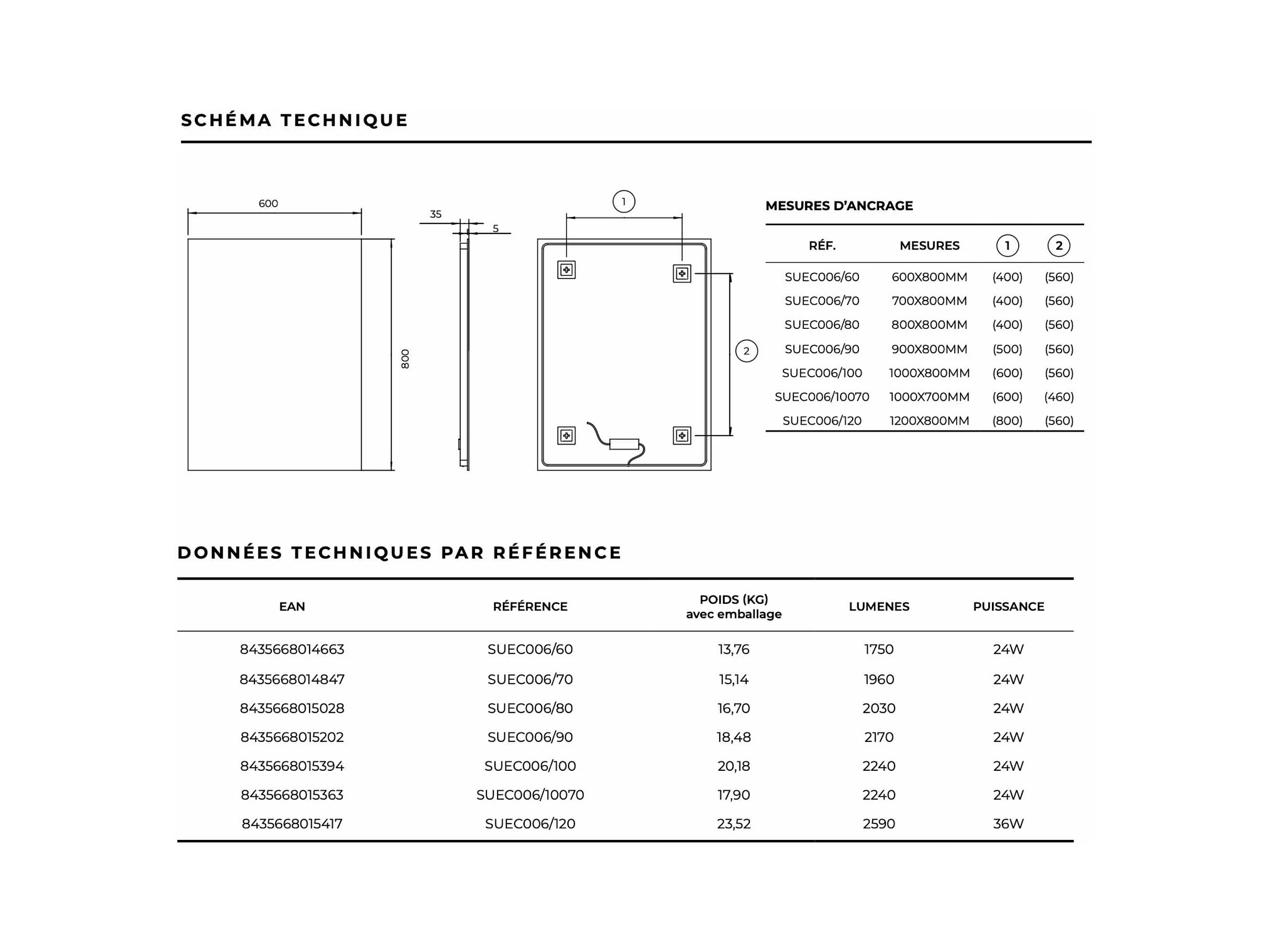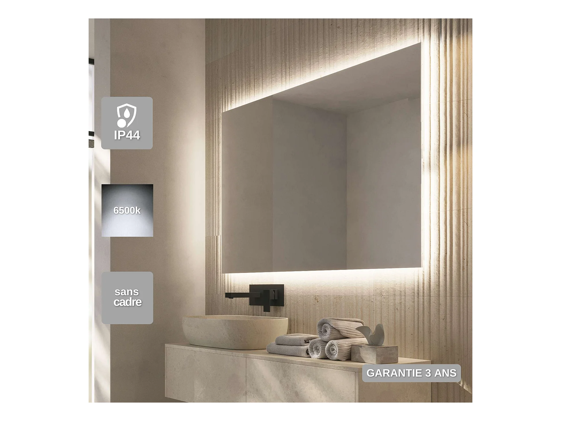 Miroir Salle de Bain SUECIA - 100x80cm - Led Rétro-Éclairé (6500K) - Verre Sécurité 5mm - LEDIMEX