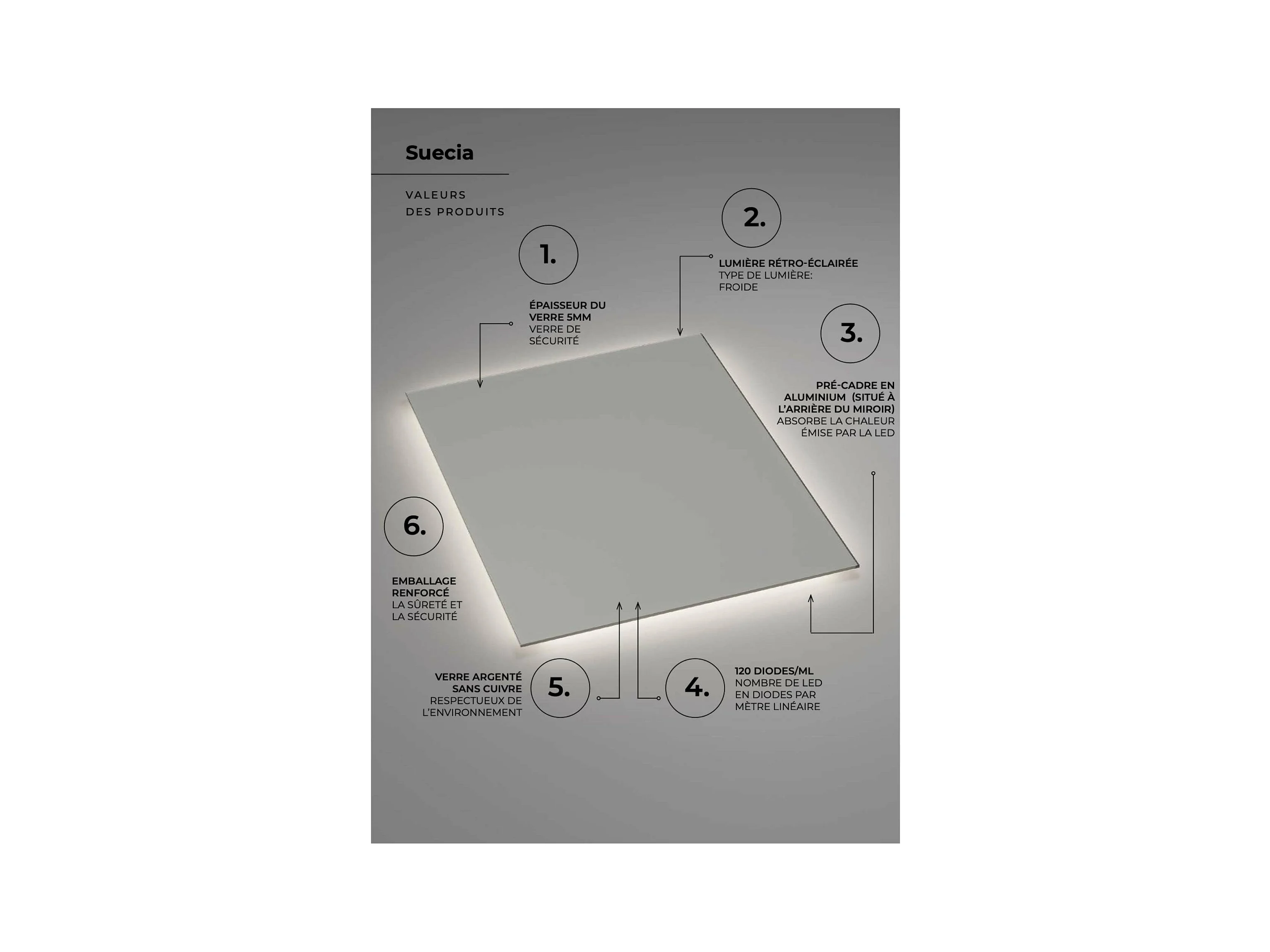 Miroir Salle de Bain SUECIA - 90x80cm - Led Rétro-Éclairé (6500K) - Verre Sécurité 5mm - LEDIMEX