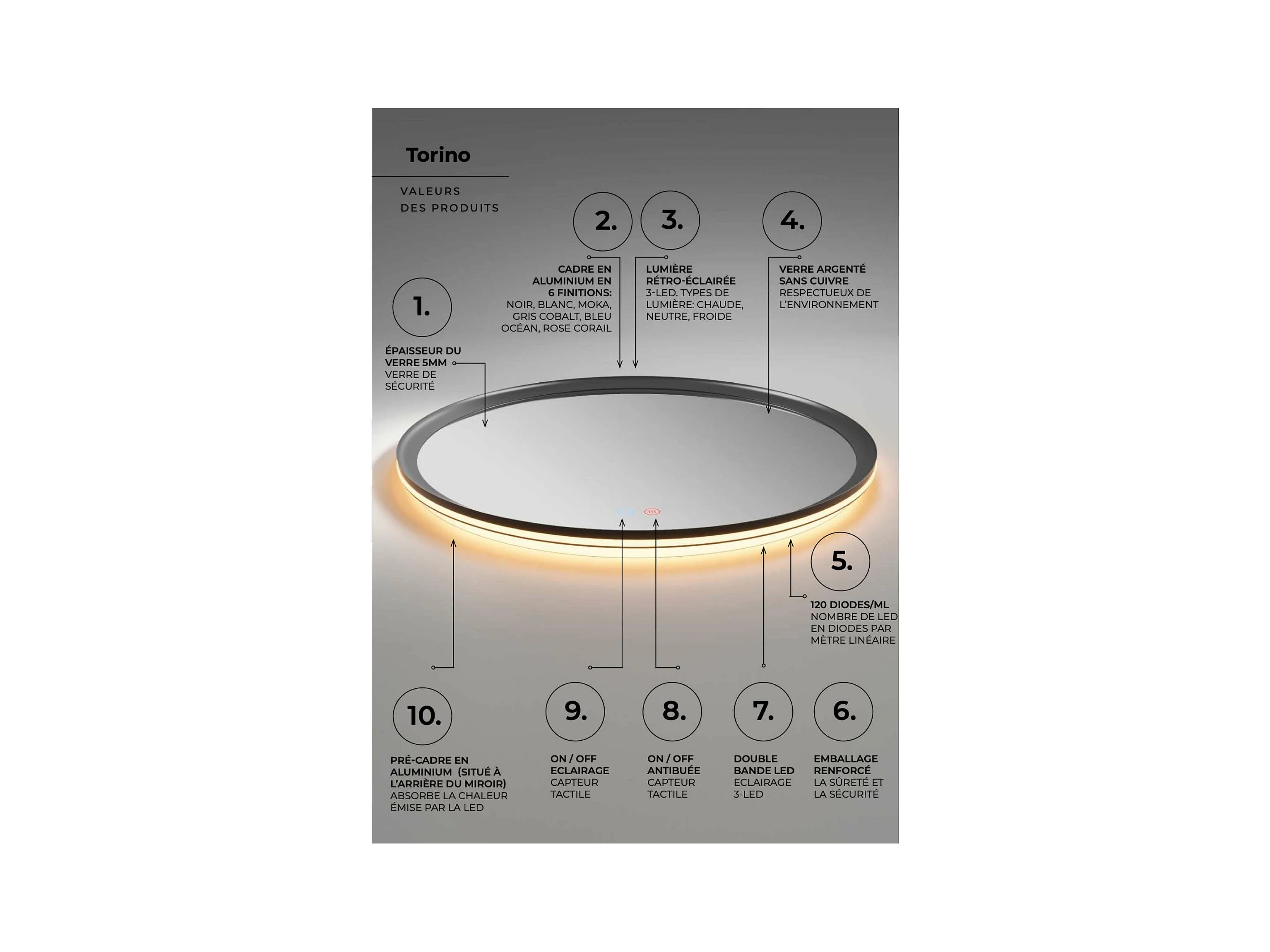 Miroir Salle de Bain TORINO Gris Ø60cm - T° Led Variable Rétro-éclairé & Frontal - Tactiles On/Off & Anti-Buée - LEDIMEX