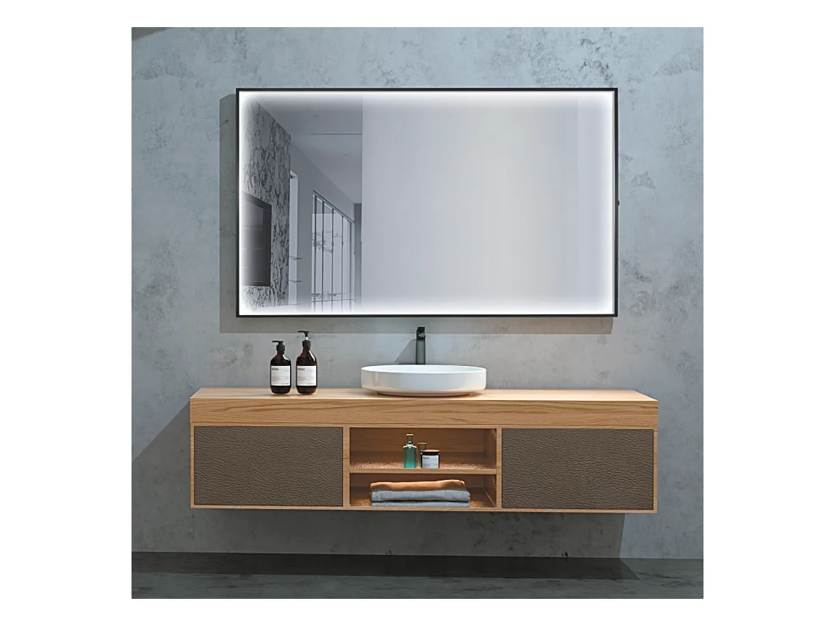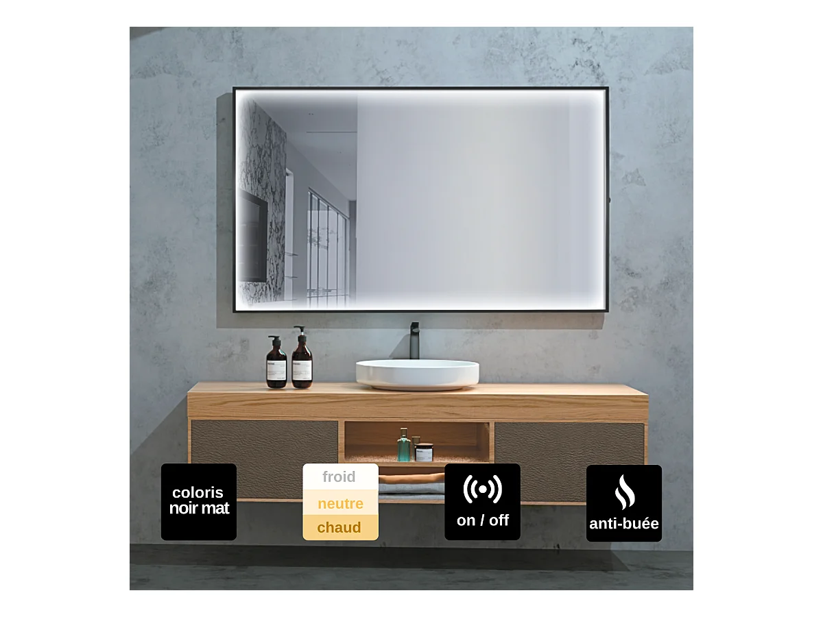 Miroir Salle de Bains Lumineux ABILITY Anti-Buée et Éclairage Périmétral Triled par Détecteur de Mouvement 140x80cm Noir Mat LEDIMEX by SANIZÉO