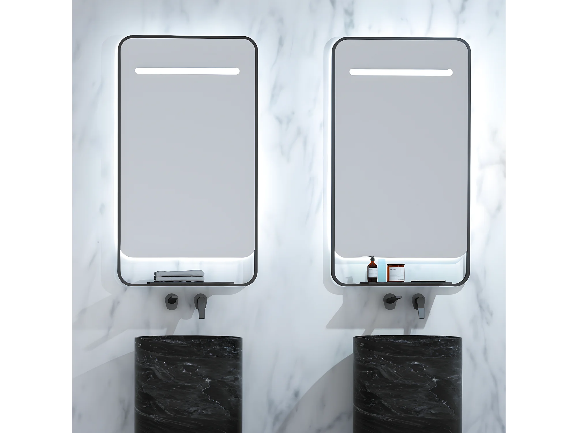 Miroir Salle de Bains Lumineux CONCEPT Anti-Buée et Éclairage Périmétral Triled Chargeur Induction Noir Mat 100x90cm LEDIMEX by SANIZÉO