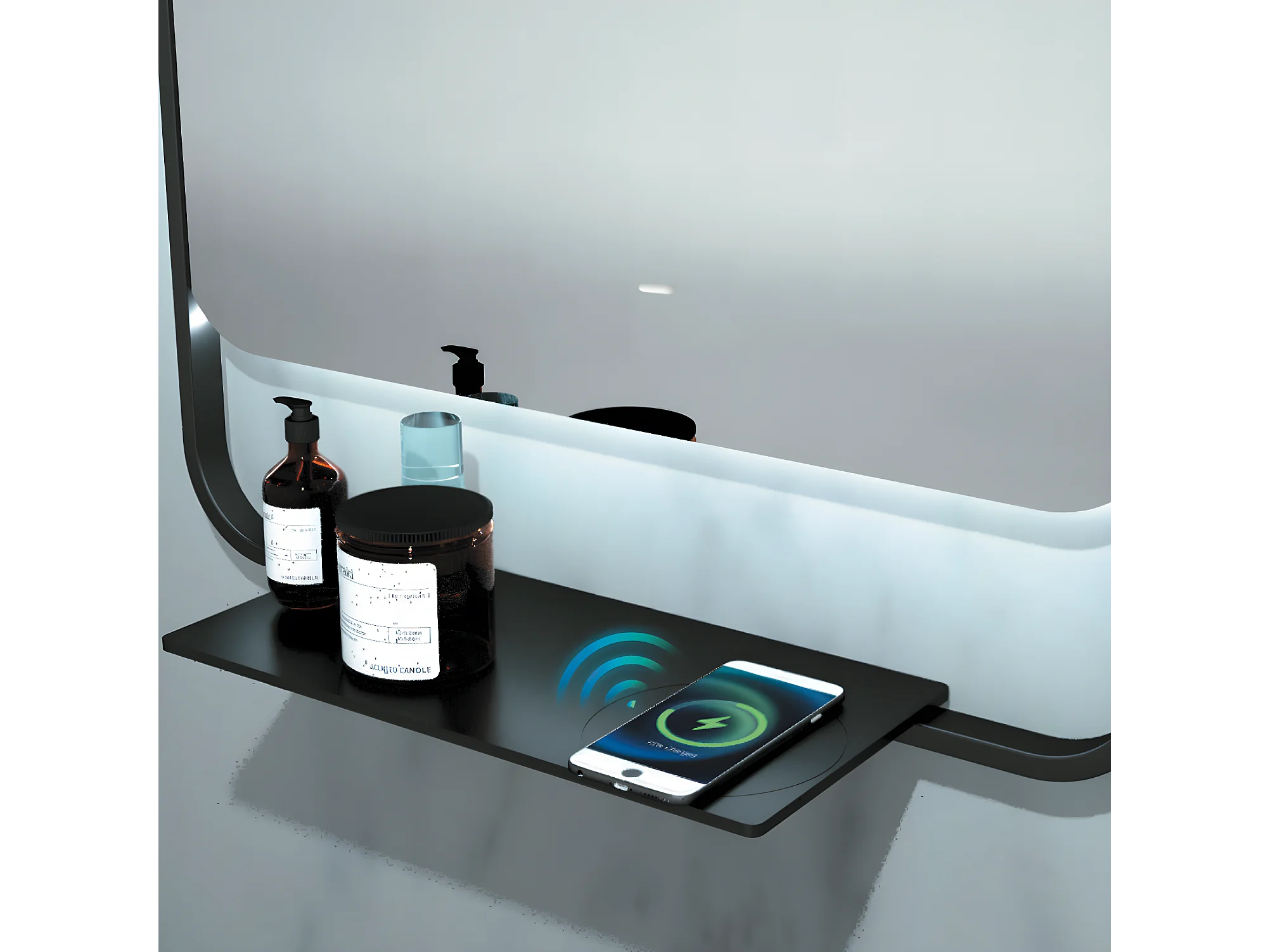 Miroir Salle de Bains Lumineux CONCEPT Anti-Buée et Éclairage Périmétral Triled Chargeur Induction Noir Mat 80x90cm LEDIMEX by SANIZÉO