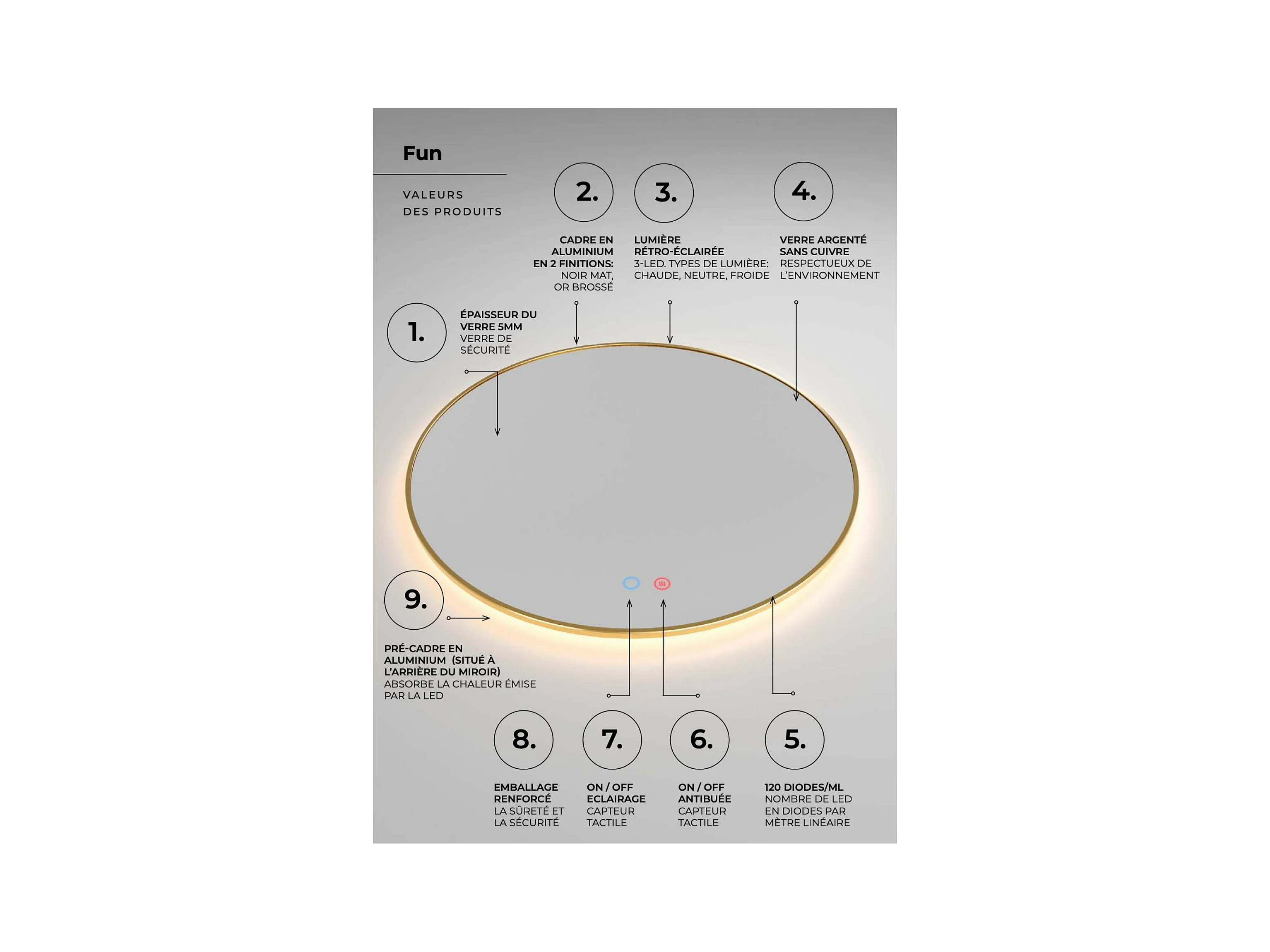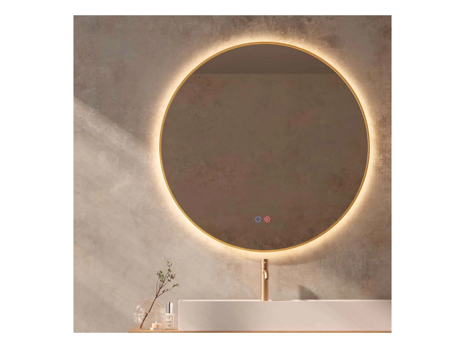 Miroir Salle de Bain FUN - Ø70cm - Or Brossé - Rétro-éclairage T° Led Variable - Tactiles On/Off & Anti-Buée - LEDIMEX