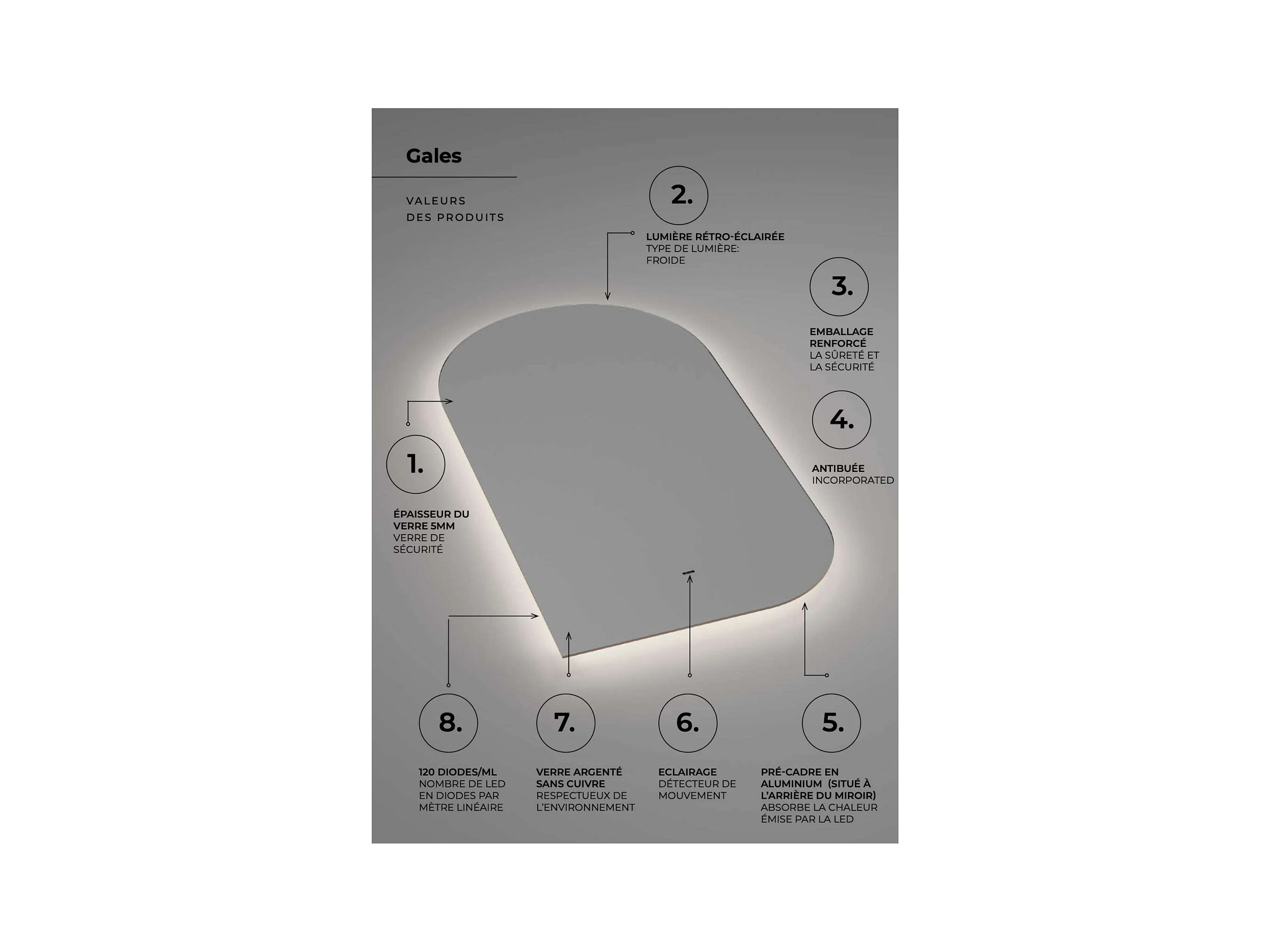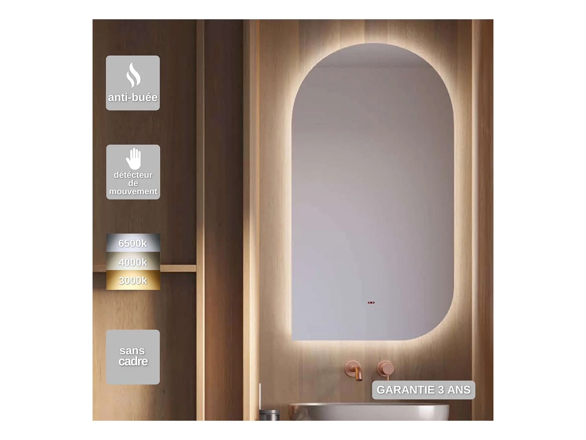 Miroir Salle de Bain GALES - 60x110cm - Led Rétro-éclairé (3000K) - Anti-Buée & Détecteur de Mouvement - LEDIMEX