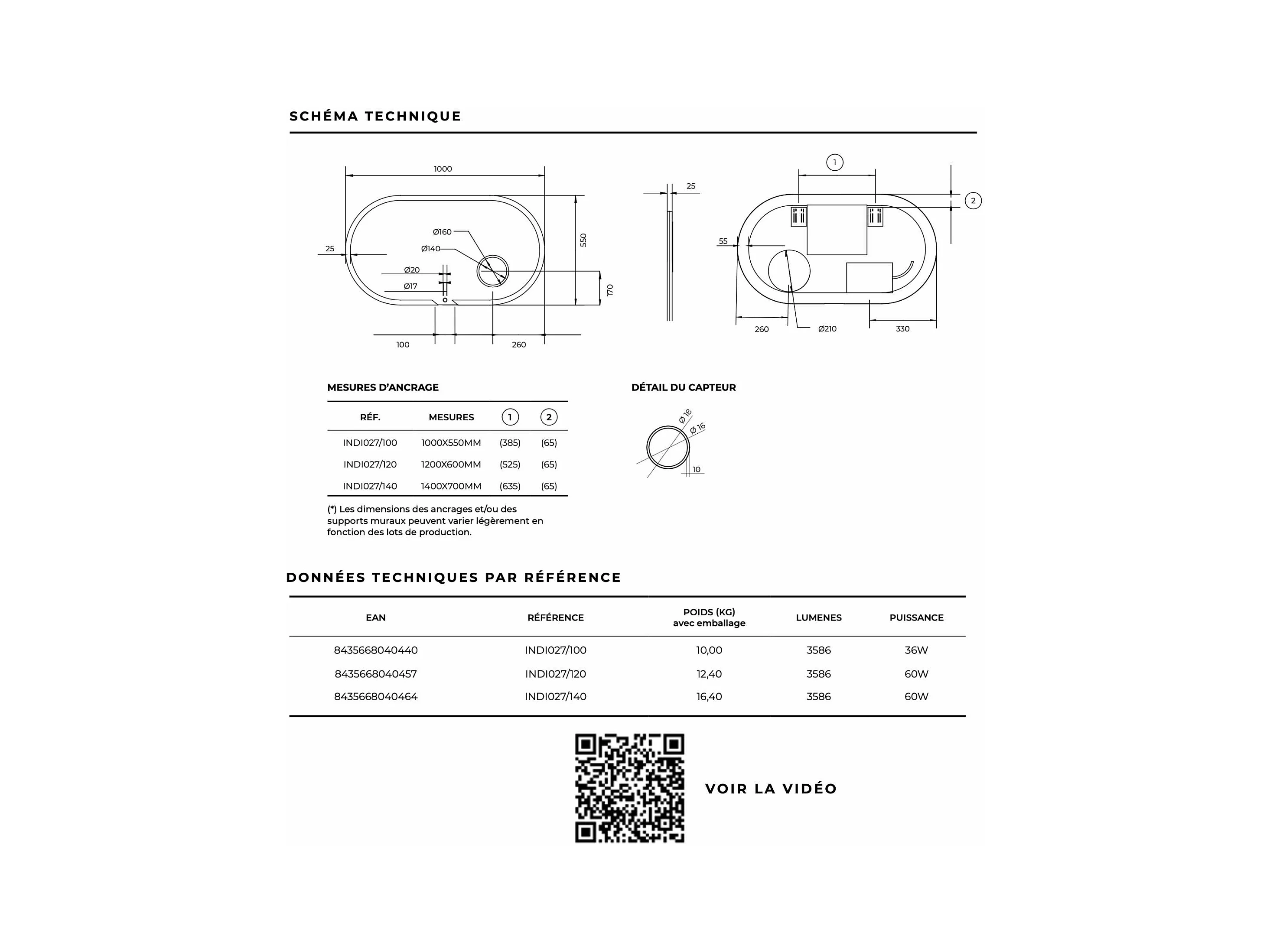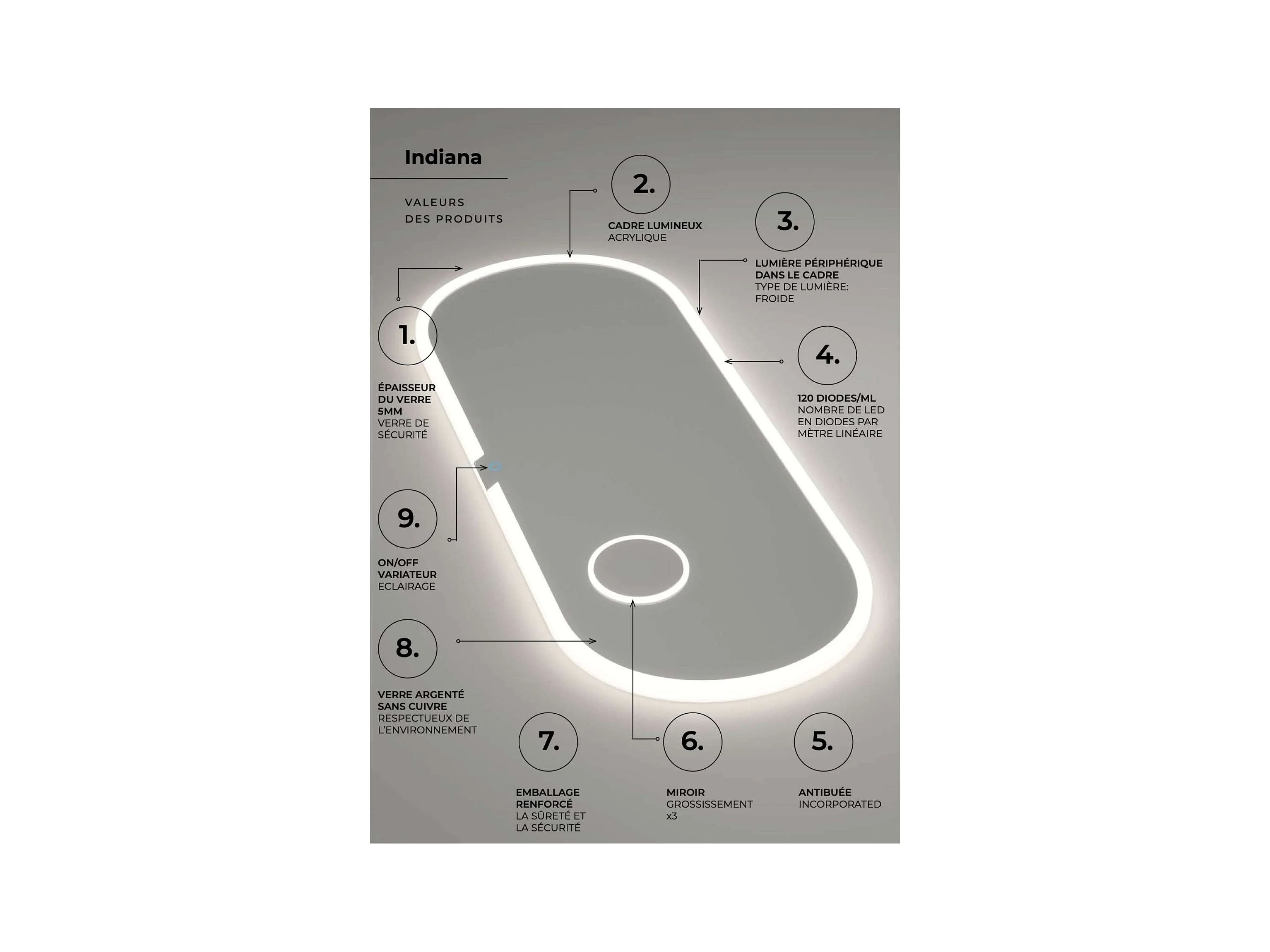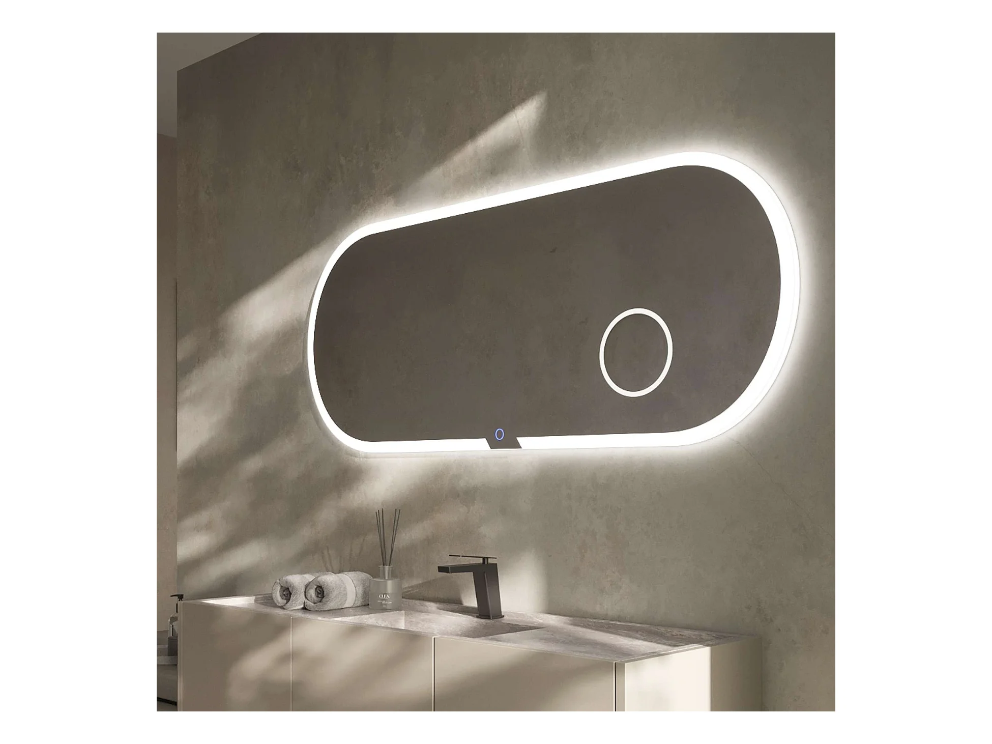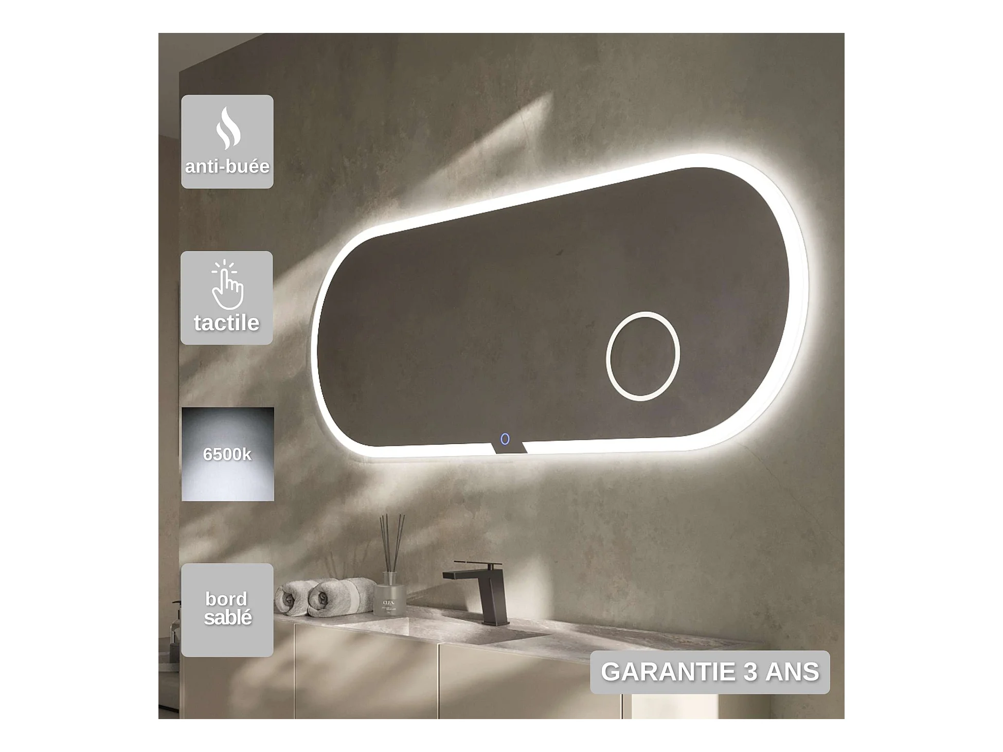 Miroir Salle de Bain INDIANA - 100x60cm - T° Led Frontal Variable - Anti-Buée & Zone Grossissant X3 - LEDIMEX