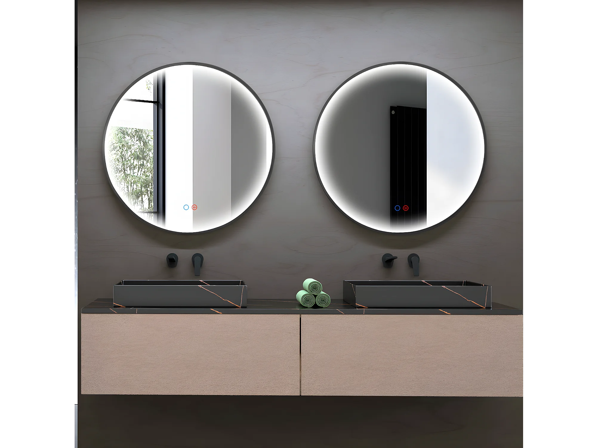 Miroir Salle de Bains Lumineux NÉPAL Anti-Buée et Éclairage Périmétral Triled Tactile On/Off Ø70 Noir Mat LEDIMEX by SANIZÉO