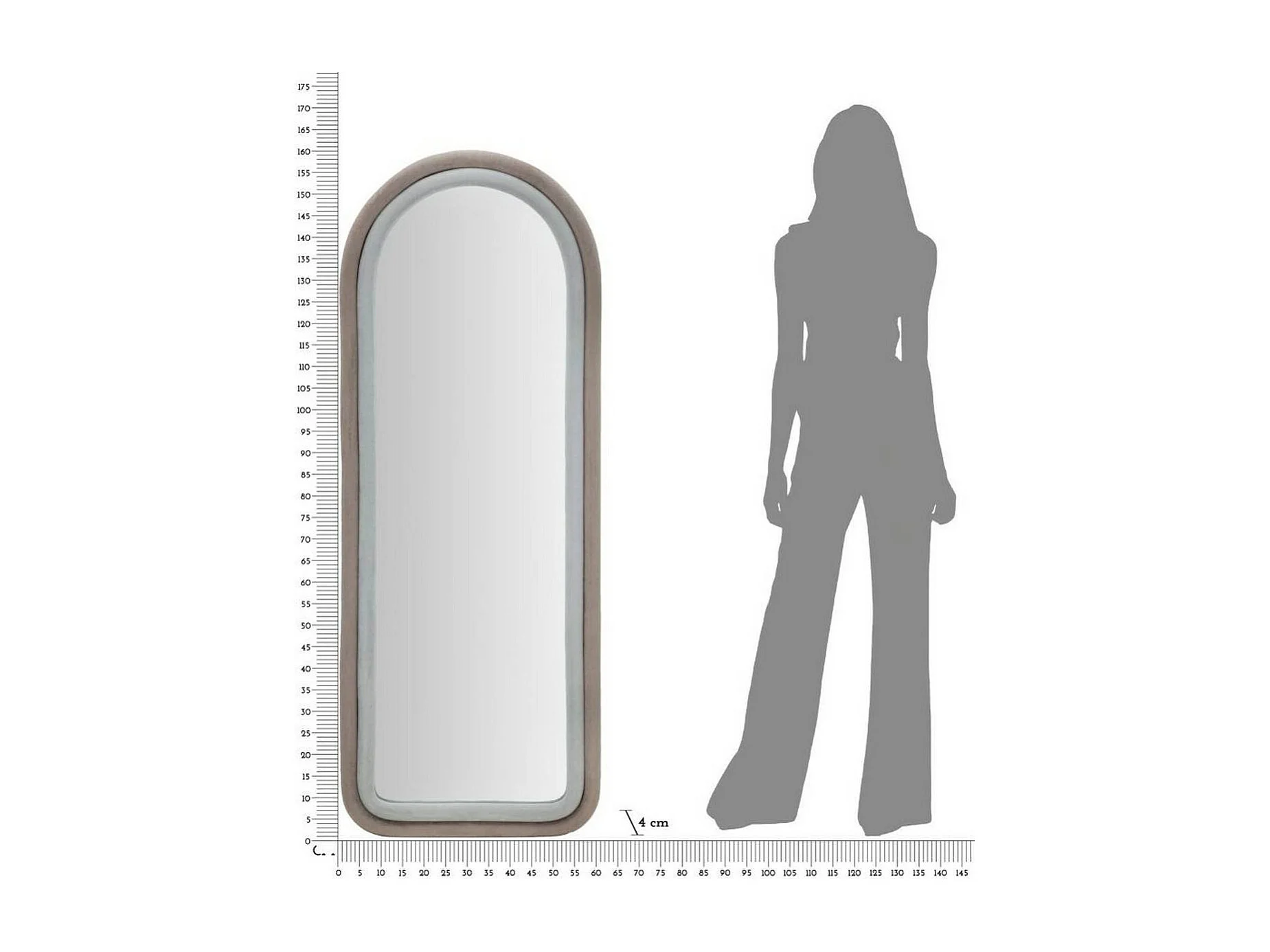Miroir Segal, Verre miroité, Objet d'ameublement mural, Décoration avec miroir, 60x4 h160 cm, Tourterelle et Gris
