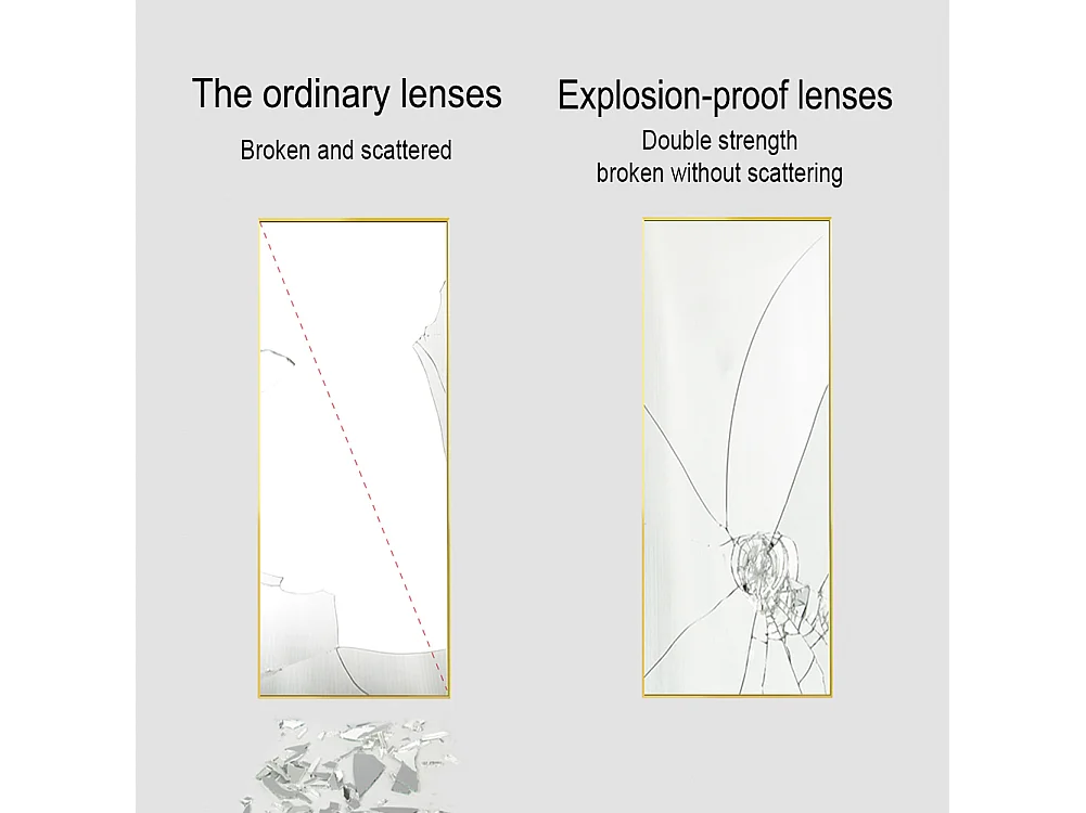 Miroir sur pied 150 x 40 cm, cadre en alliage d'aluminium de haute qualité, fixation murale et orientable, or