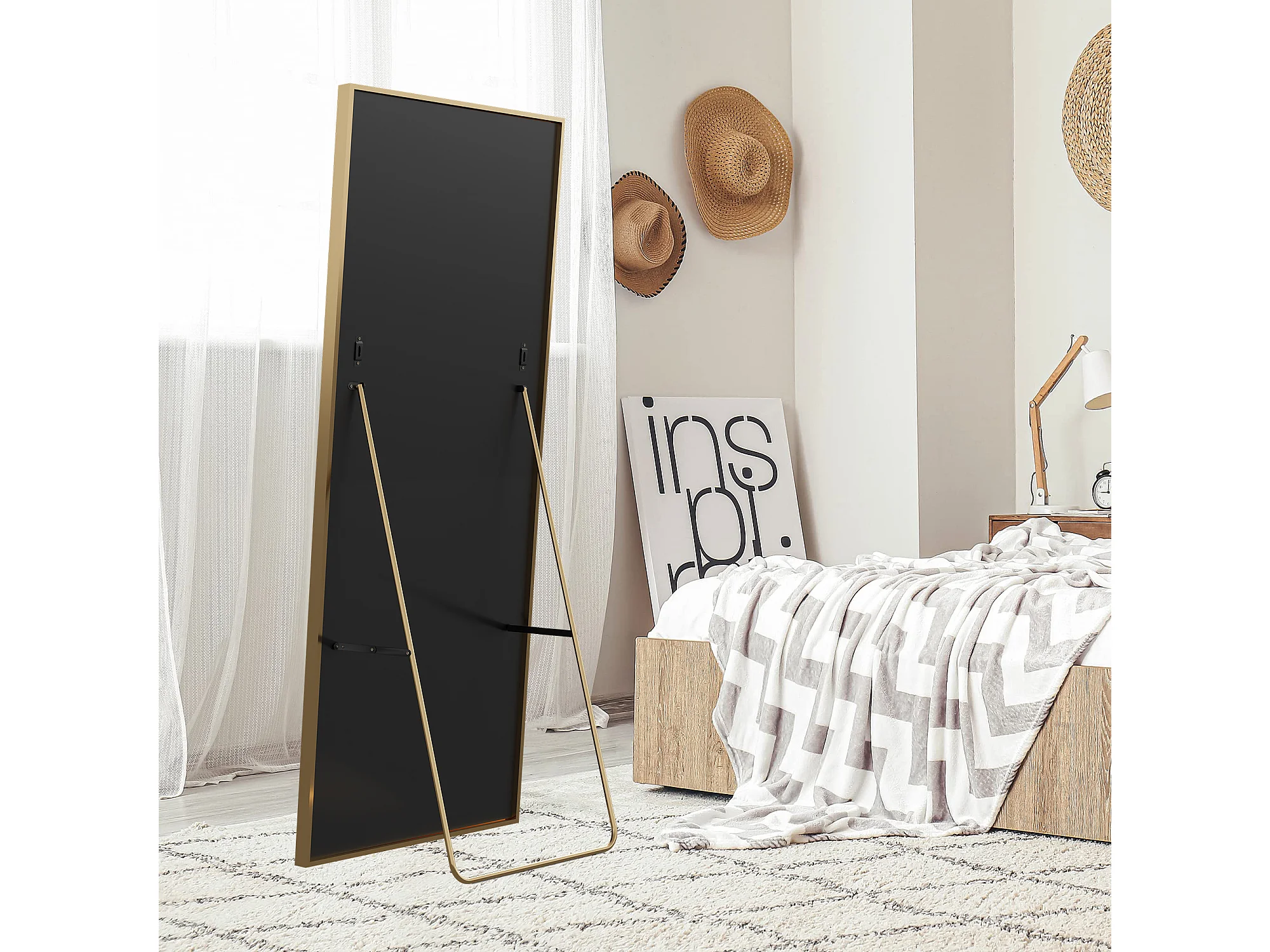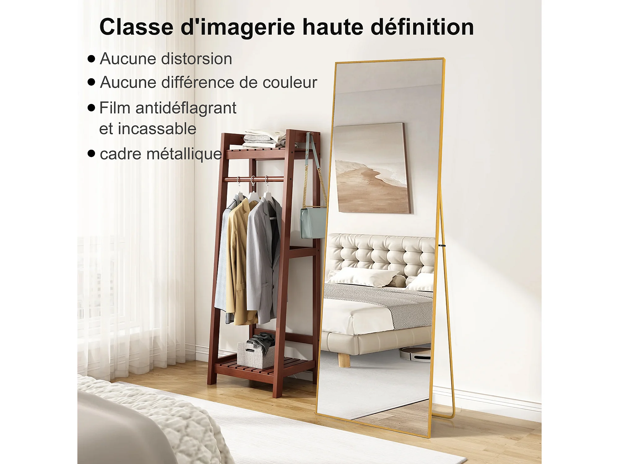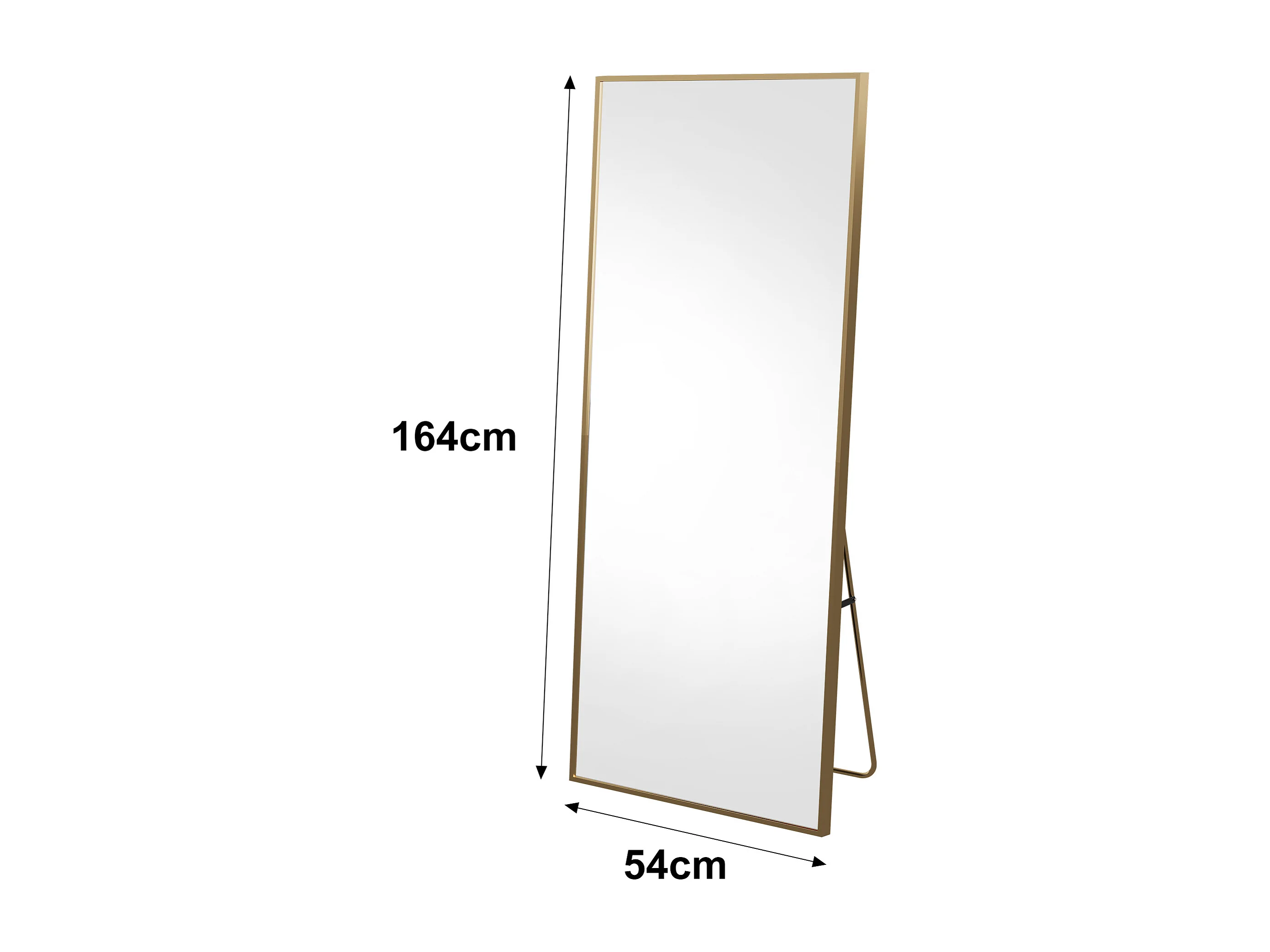Miroir sur pied 164 x 54 cm - miroir autoportant, à accrocher ou à poser contre un mur - grand miroir sur pied - or