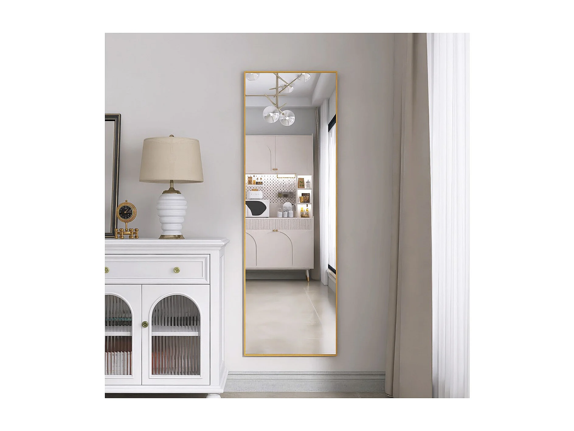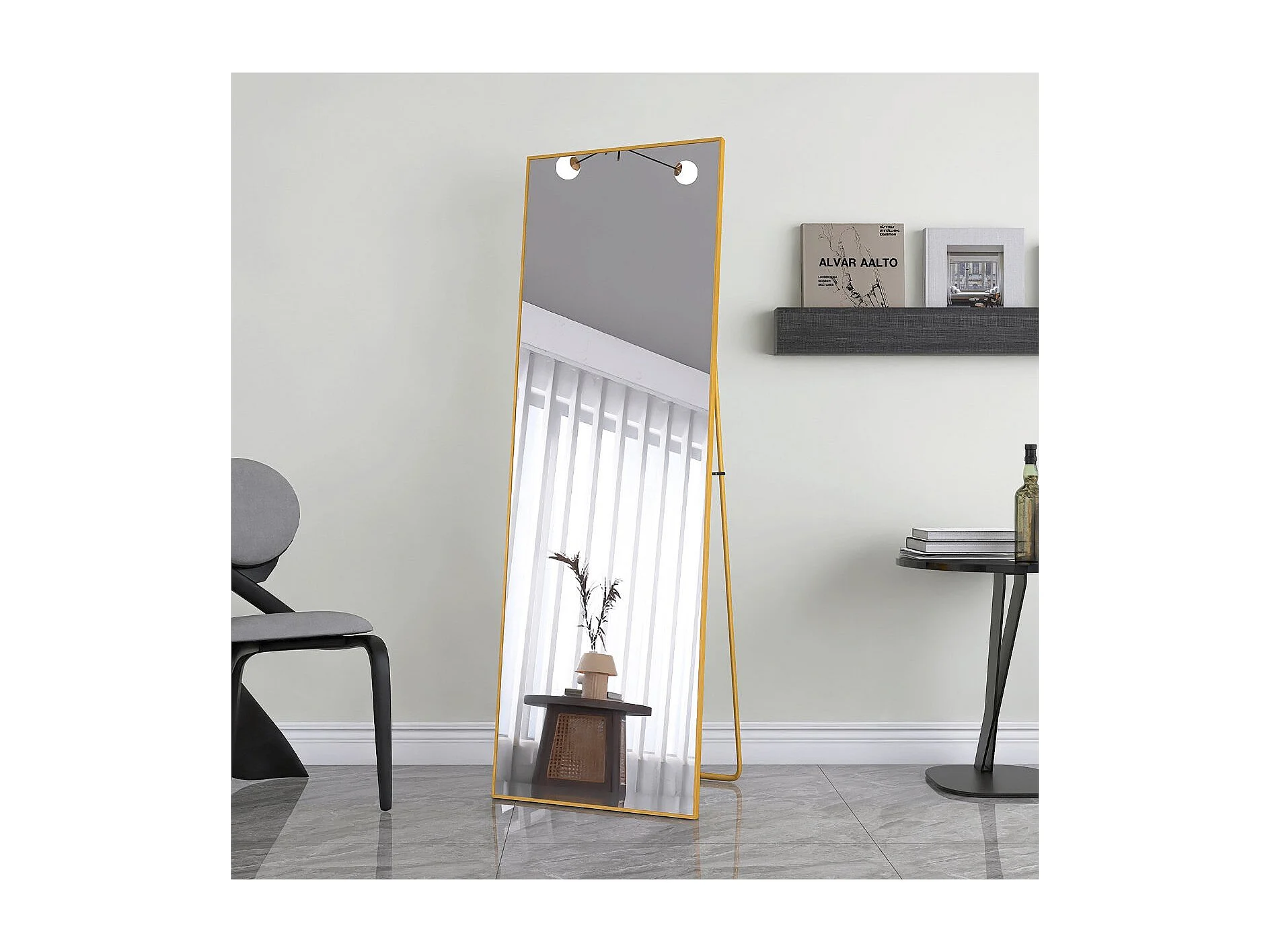 Miroir sur pied doré 162 x 53 cm, grand miroir plein pied, miroir de chambre à poser, cadre fin en métal, style moderne élégant