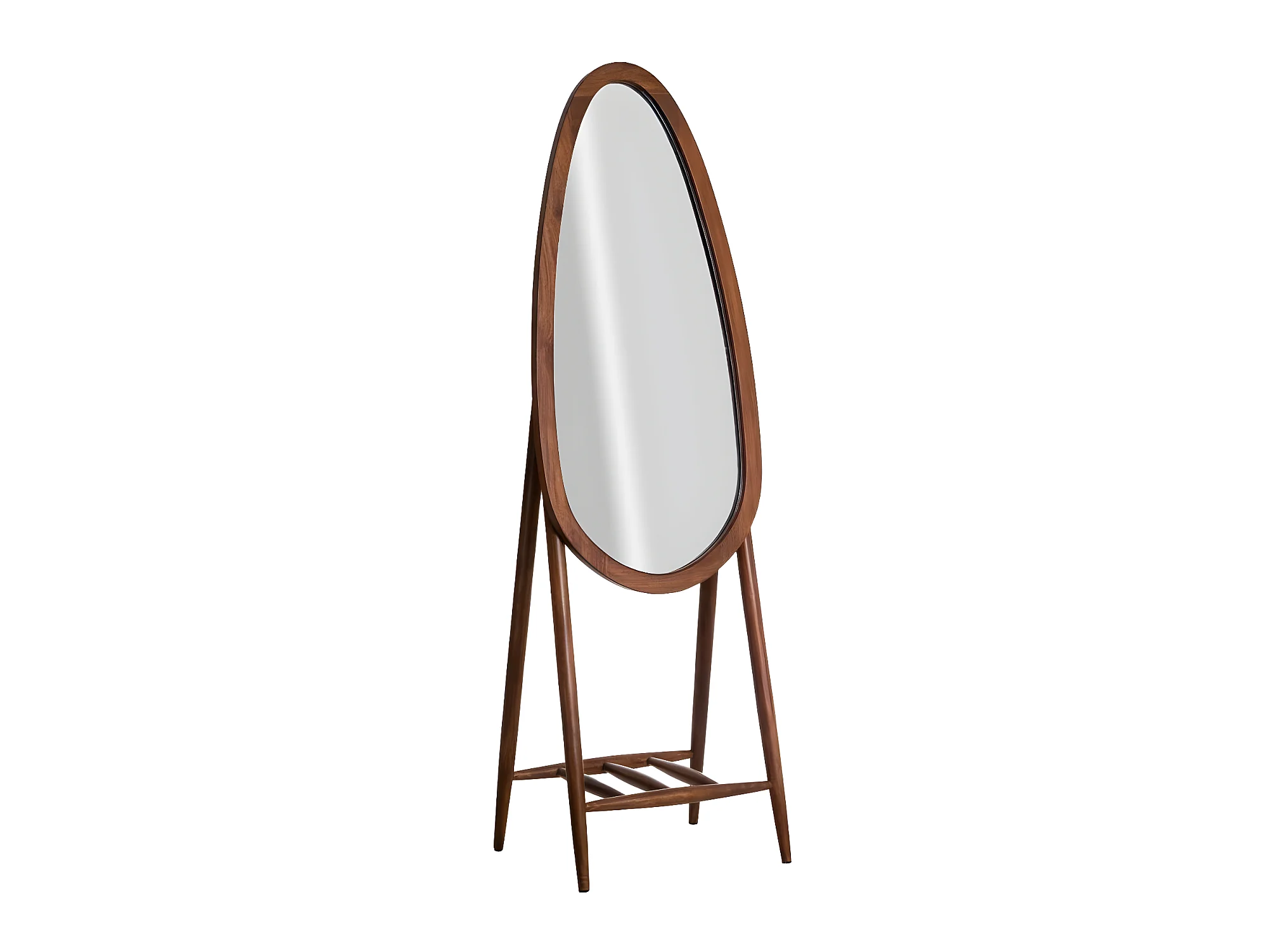 Miroir sur pied et mural rectangulaire dim. 37L x 43l x 156H cm verre MDF aspect noyer clair