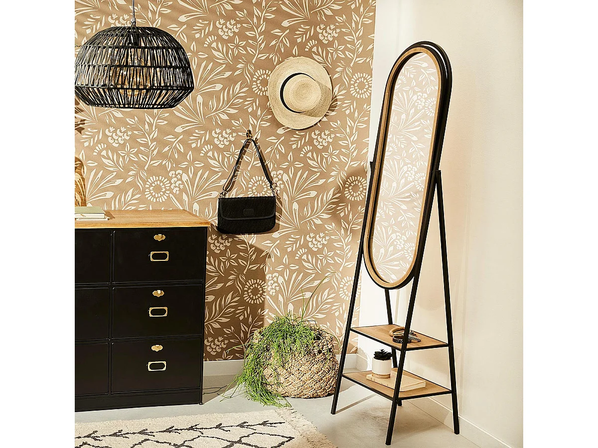 Miroir sur pied en Bois et Métal avec 2 étagères 160 x 44 cm