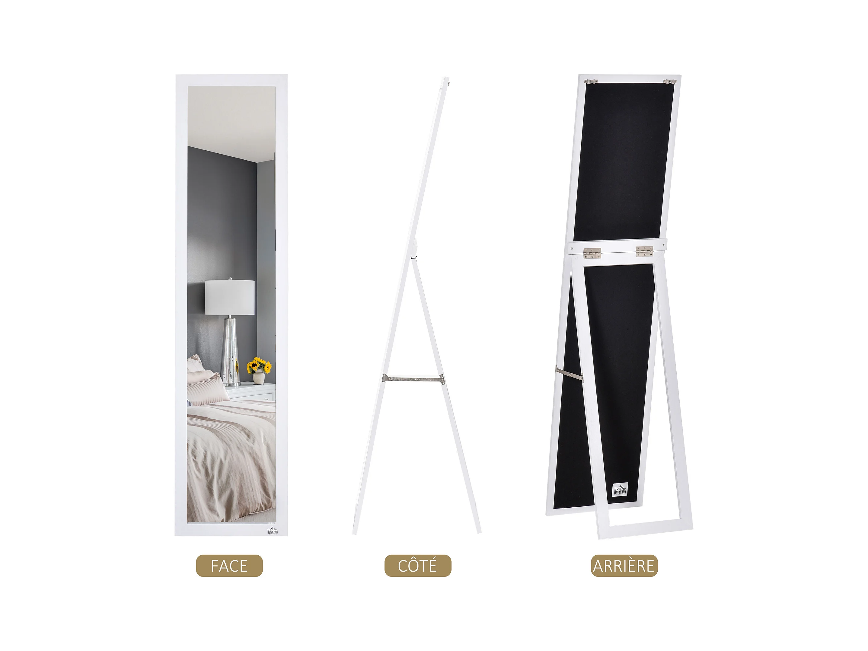 Miroir sur pied et mural rectangulaire dim. 37L x 48l x 152H cm blanc