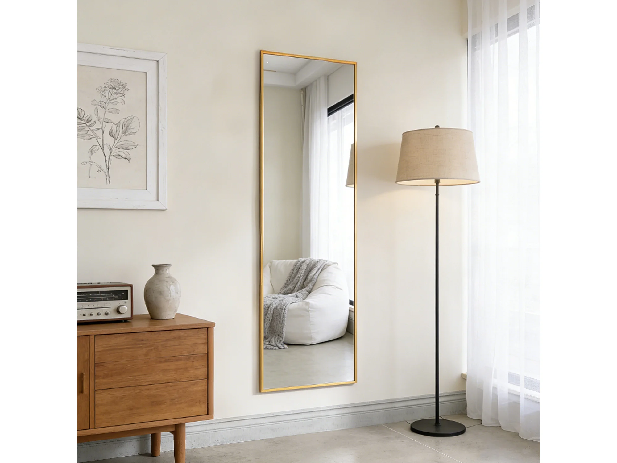 Miroir sur pied et mural rectangulaire - miroir corporel avec support - métal et verre trempé - 162x53 cm - doré