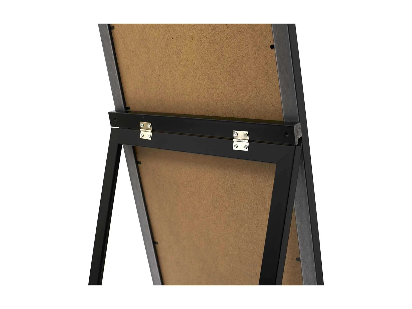 Miroir sur pied 140 x 45 cm - à bords ondulés irréguliers - avec support et cadre en bois recouvert de flanelle -noir