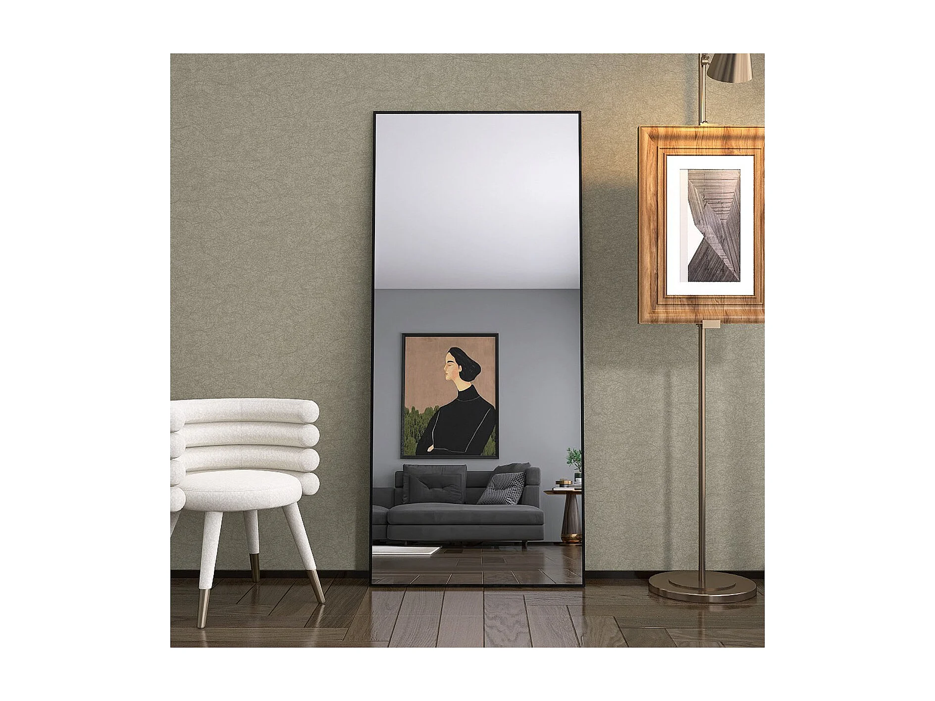 Miroir sur pied noir 180 x 80 cm, grand miroir plein pied, miroir de chambre à poser, cadre fin en métal, style moderne minimaliste