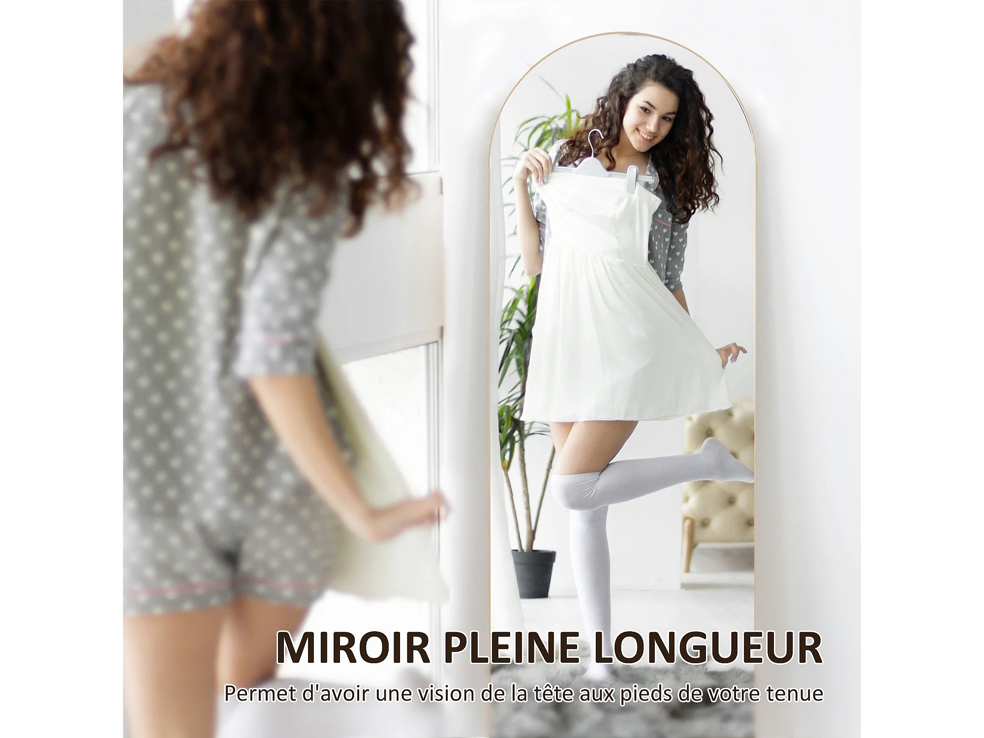 Miroir sur pied ou mural dim. 50L x 150H cm ton doré