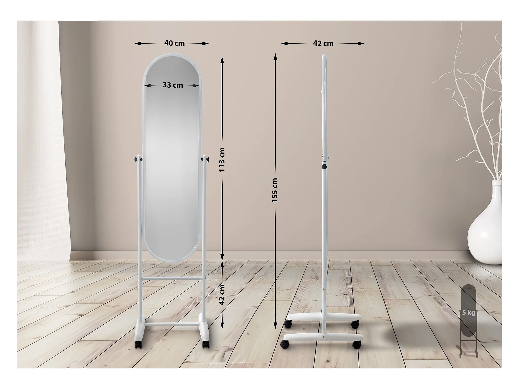 Stand - Miroir sur pied - Couleur - Blanc