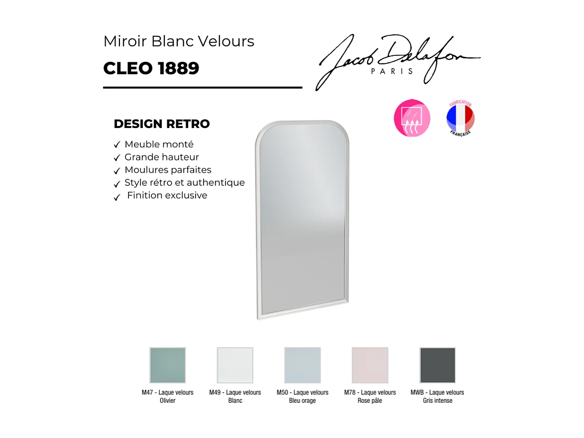 Miroir vertical salle de bain JACOB DELAFON Cléo 1889 Blanc Velours