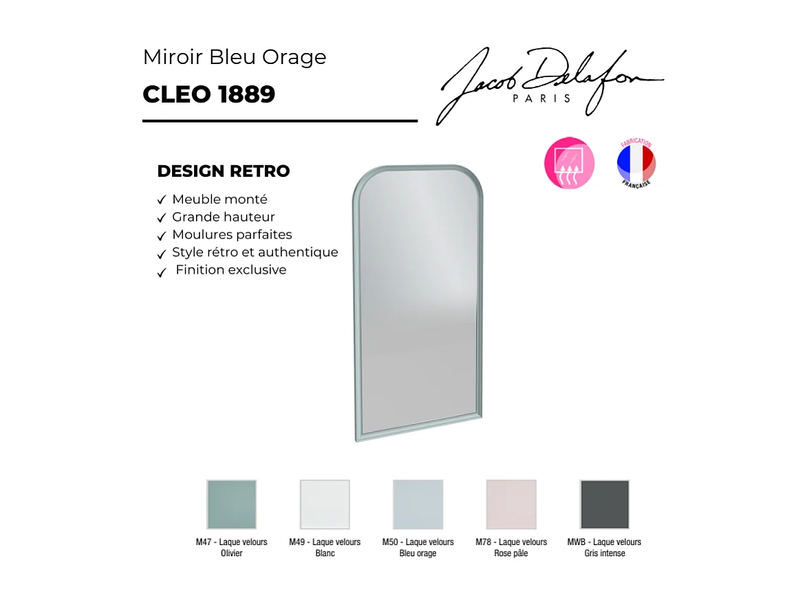 Miroir vertical salle de bain JACOB DELAFON Cléo 1889 Vert Olivier Velours