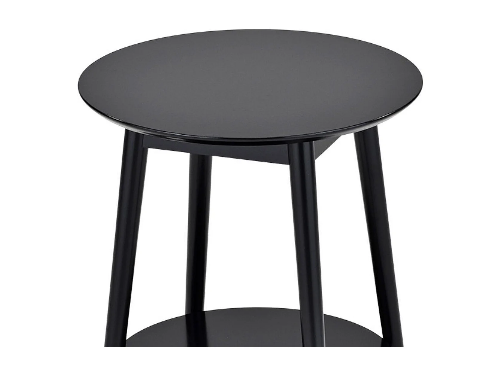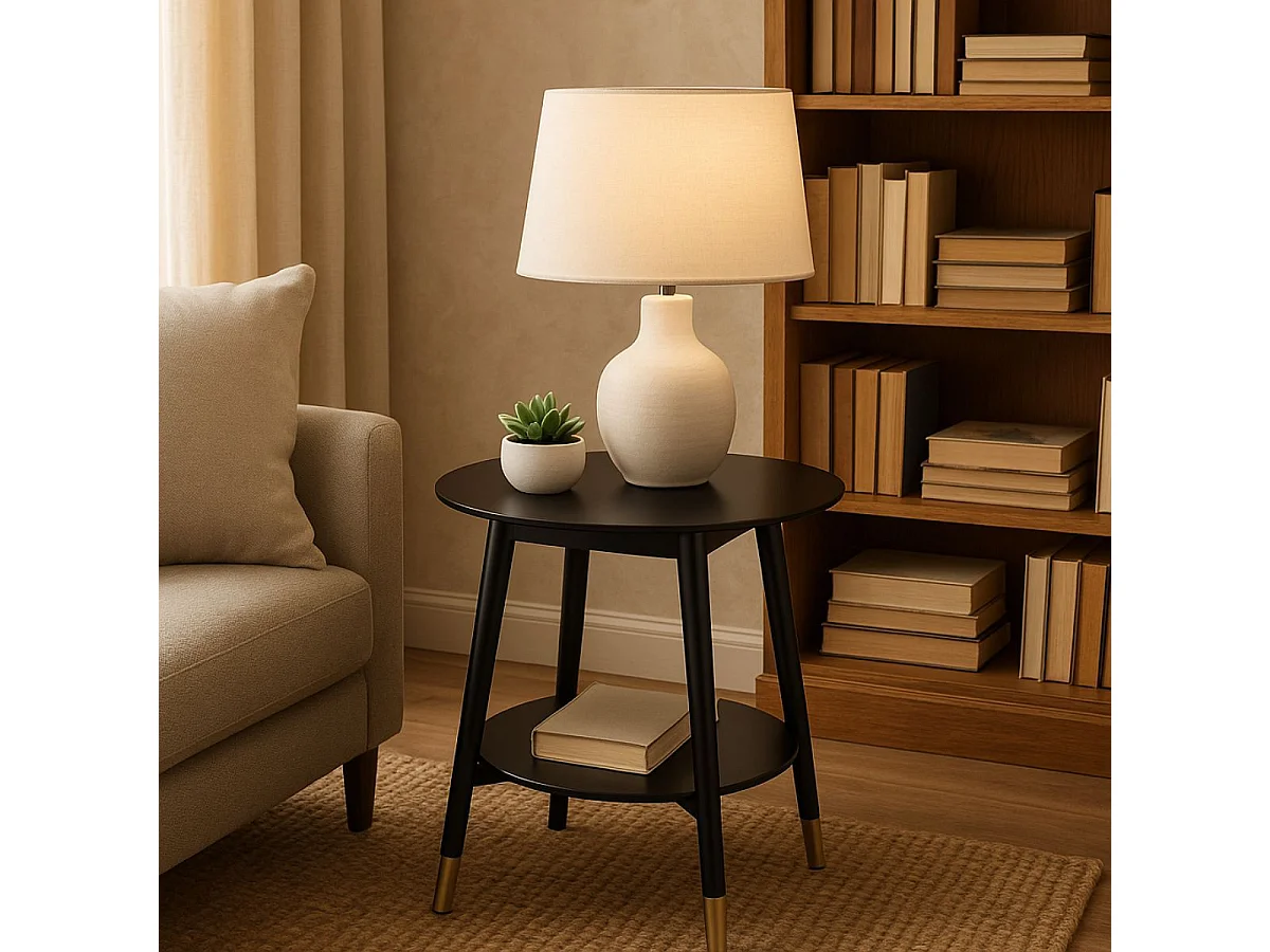 MISSY - Chevet Rond Laqué Noir 2 Tablettes Détail Doré
