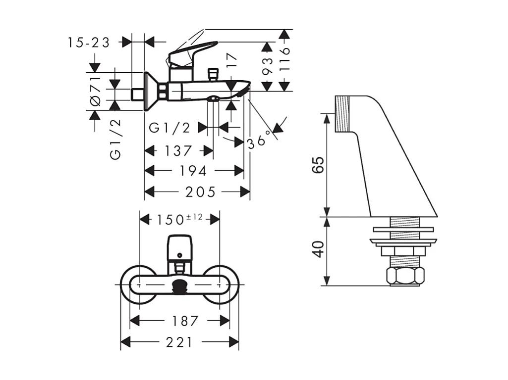 Mitigeur baignoire mécanique HANSGROHE Logis