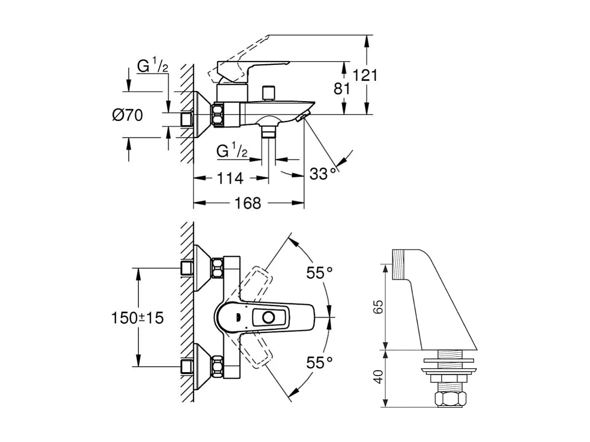 Pack mitigeur bain douche mécanique GROHE Start Loop + douchette ronde 2 jets + flexible + support