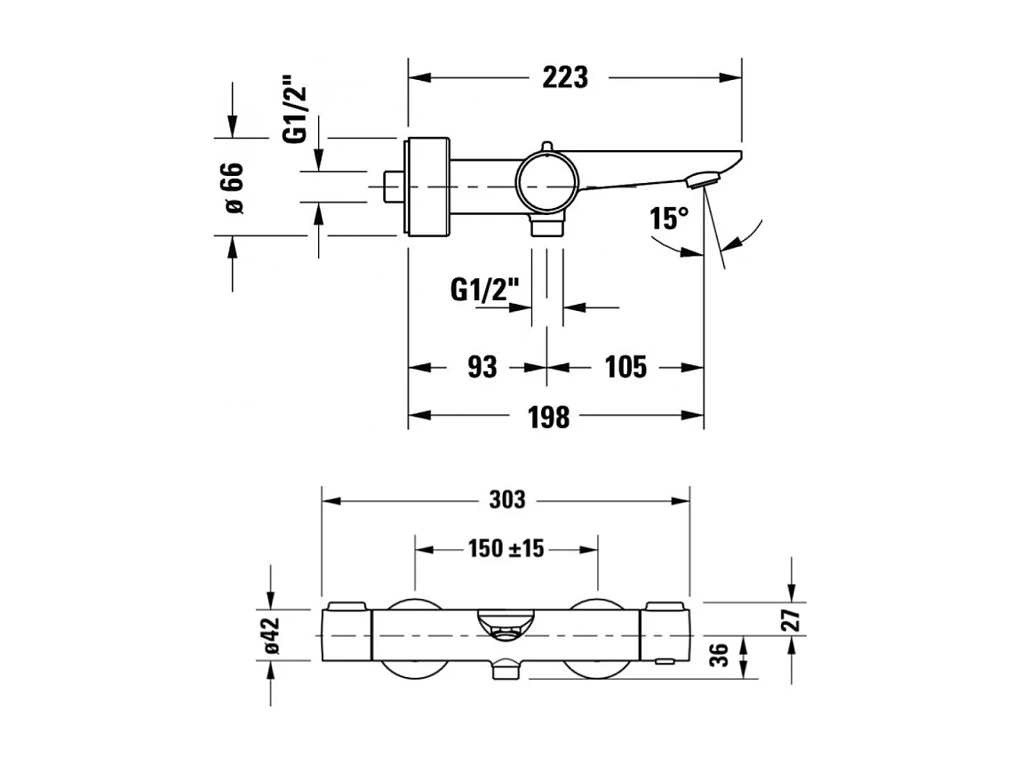 Mitigeur baignoire thermostatique DURAVIT Wave chromé brillant avec colonnettes