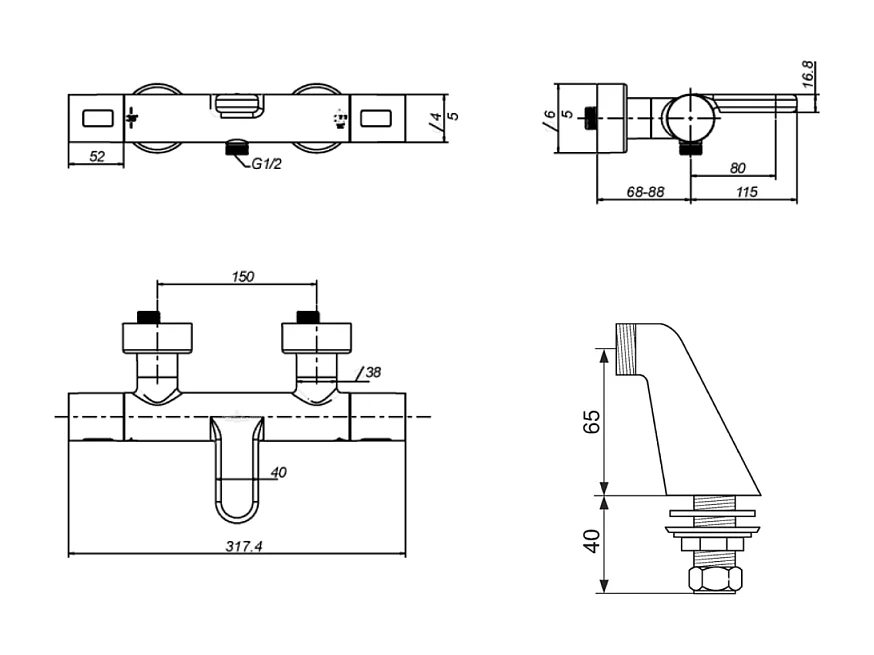 Mitigeur baignoire thermostatique VILLEROY ET BOCH Universal rond avec colonnettes