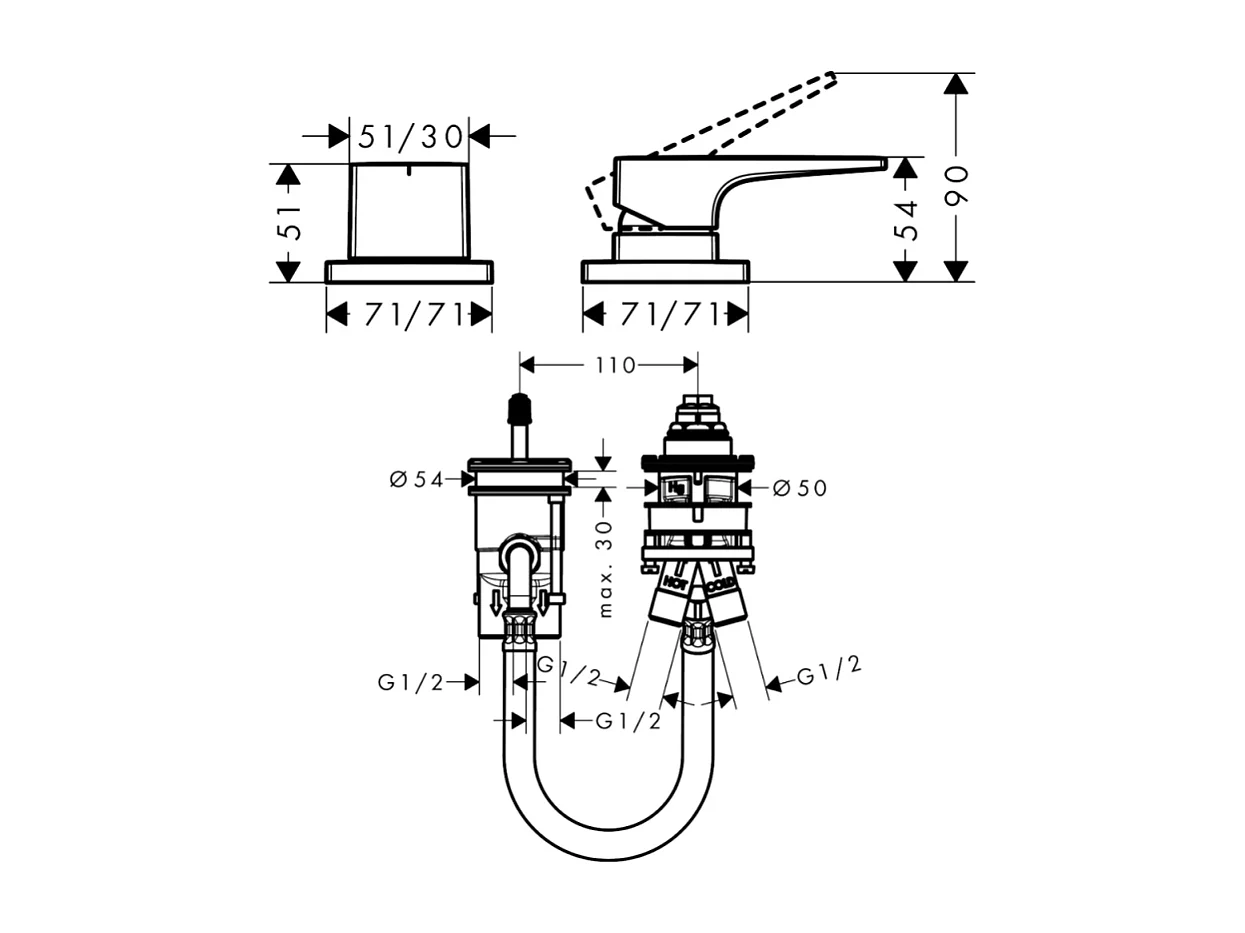 Mitigeur bain douche 2 sorties poignée manette HANSGROHE Metropol chromé + corps encastré