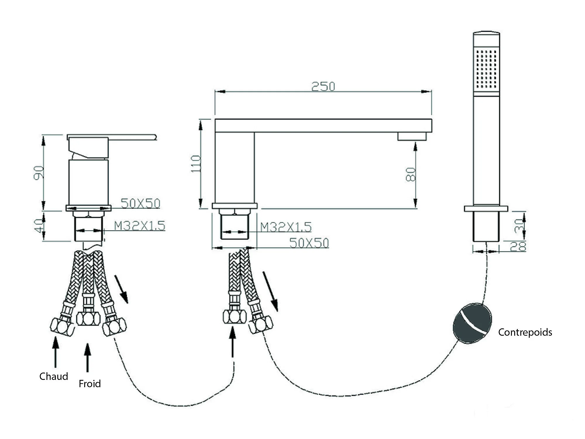 Mitigeur bain-douche 3 trous sur plage Gun métal - Sirius