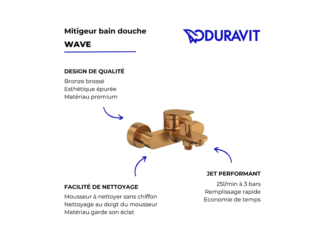 Mitigeur bain douche mécanique DURAVIT Wave bronze brossé