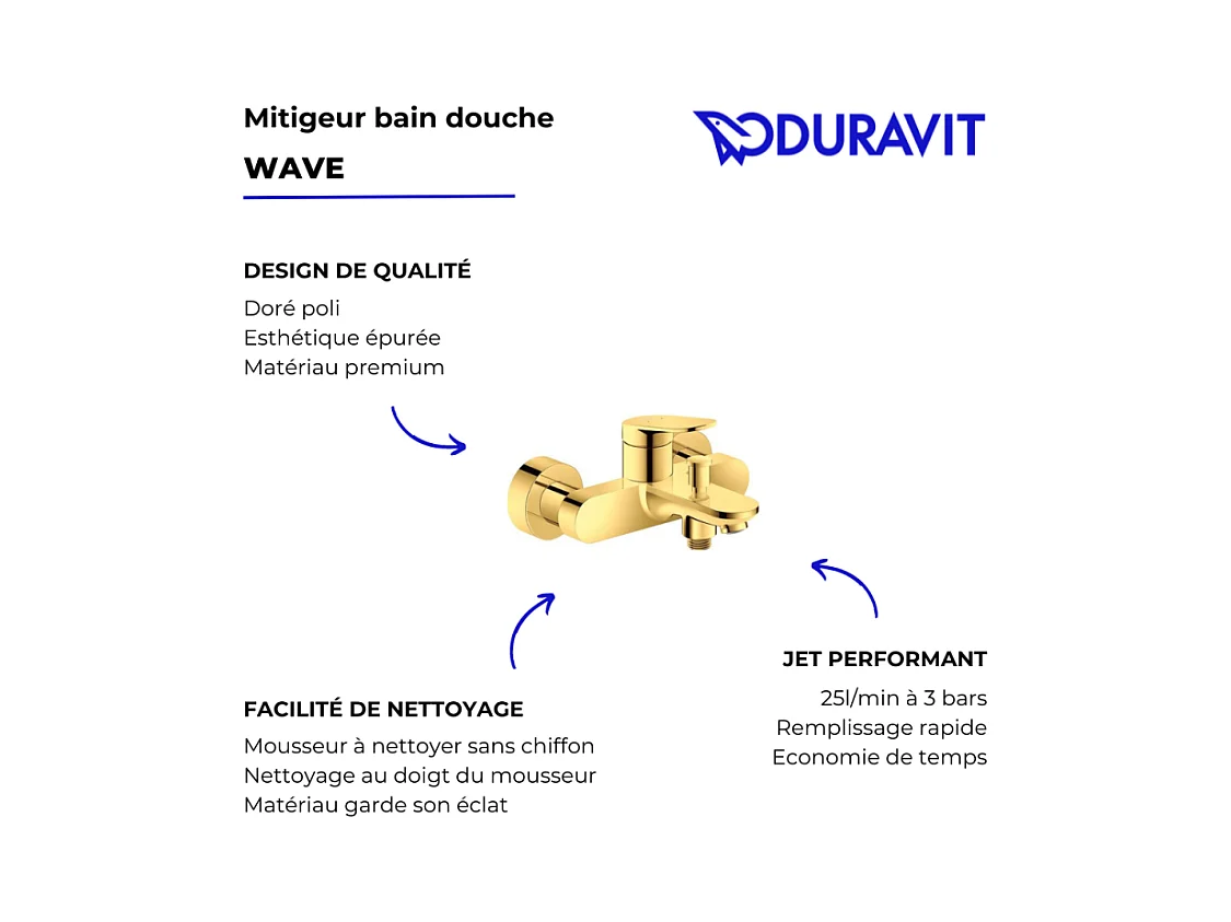 Mitigeur bain douche mécanique DURAVIT Wave doré poli
