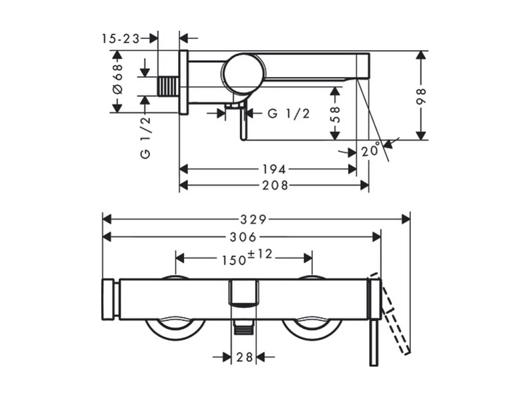 Mitigeur bain douche mécanique HANSGROHE Finoris noir mat