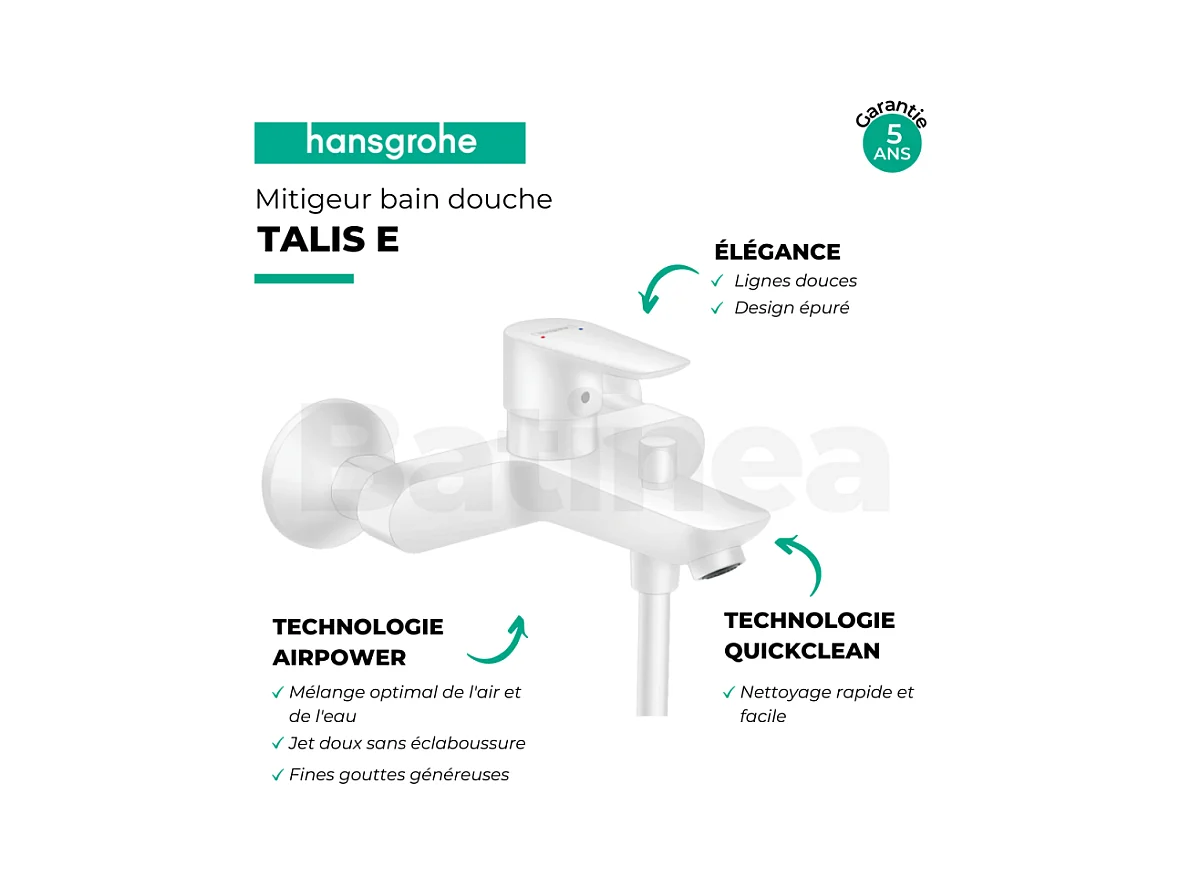 Mitigeur bain douche mécanique HANSGROHE Talis E blanc mat